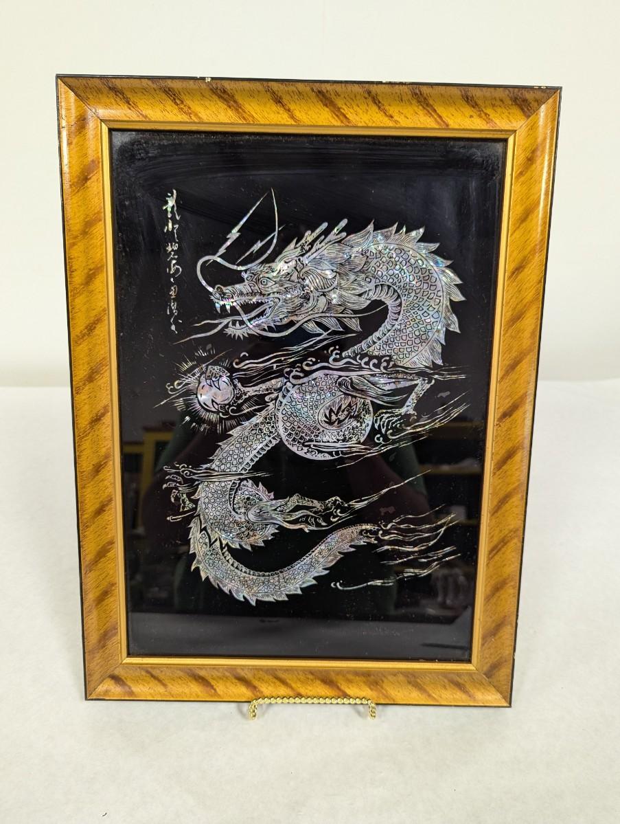 Hand Made Mother Of Pearl Made In Korea Framed Dragon