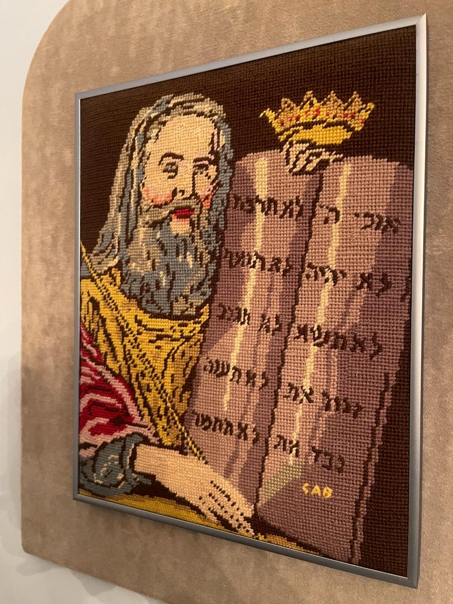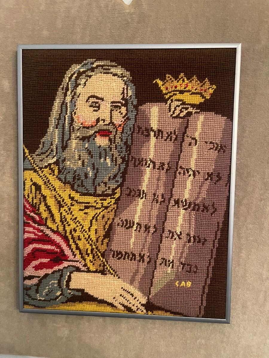 Hand Made Needlepoint of Moses and the Ten Commandments, Custom Framed