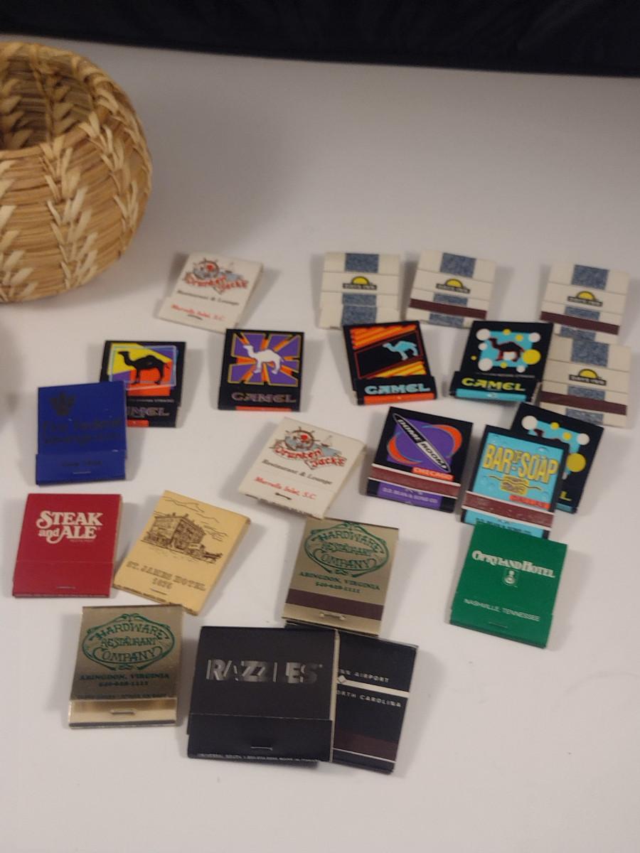 Hand Made Papago Indian Basket with Matchbook Collection