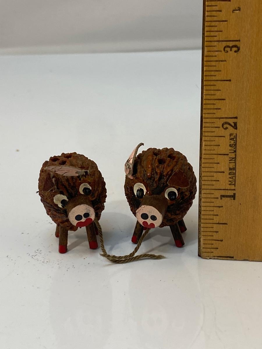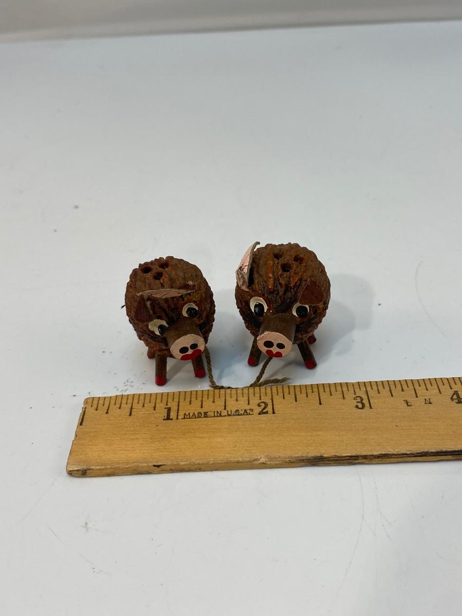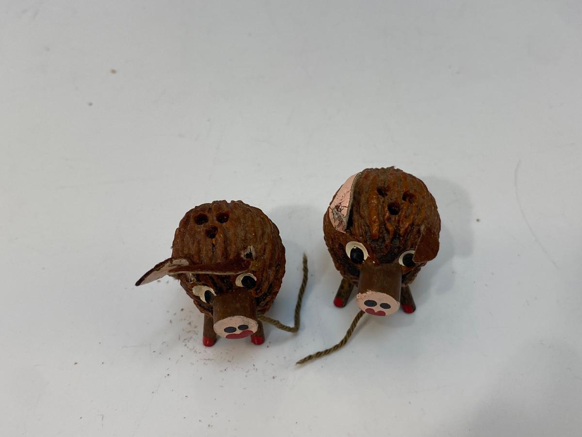 Hand Made Peach Pit Nut Pig Cow Animal Salt & Pepper Shaker Miniatures