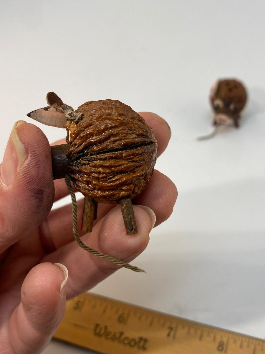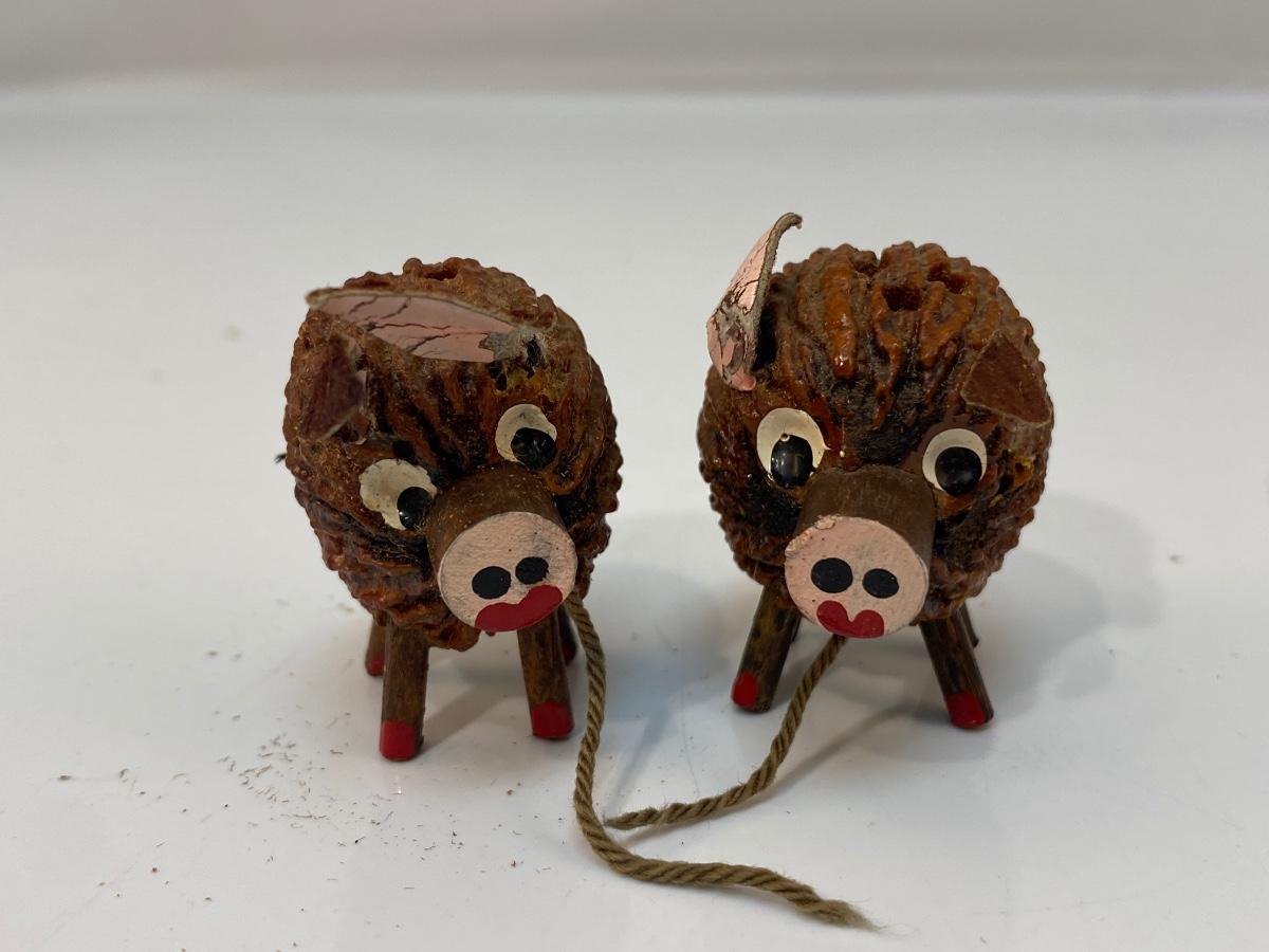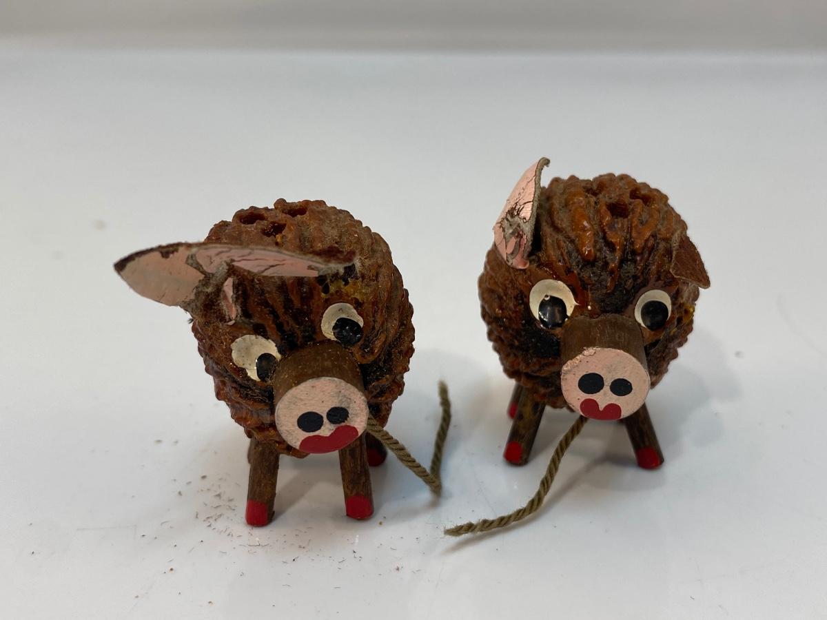 Hand Made Peach Pit Nut Pig Cow Animal Salt & Pepper Shaker Miniatures