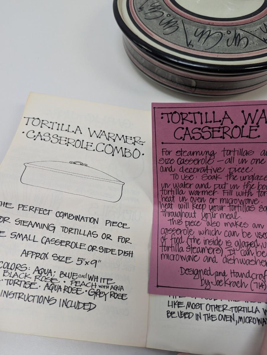 Hand Made Pottery Covered Casserole Dish with Tortilla Warmer Insert