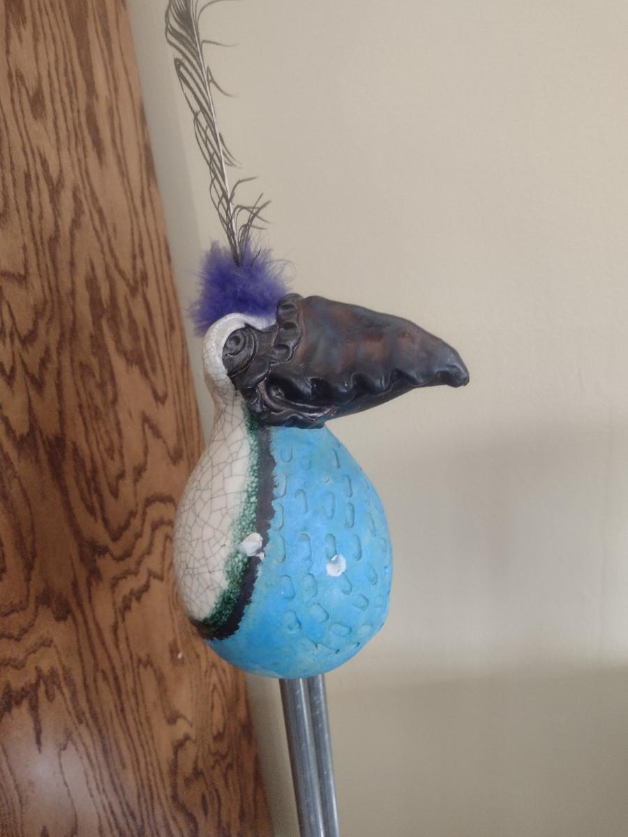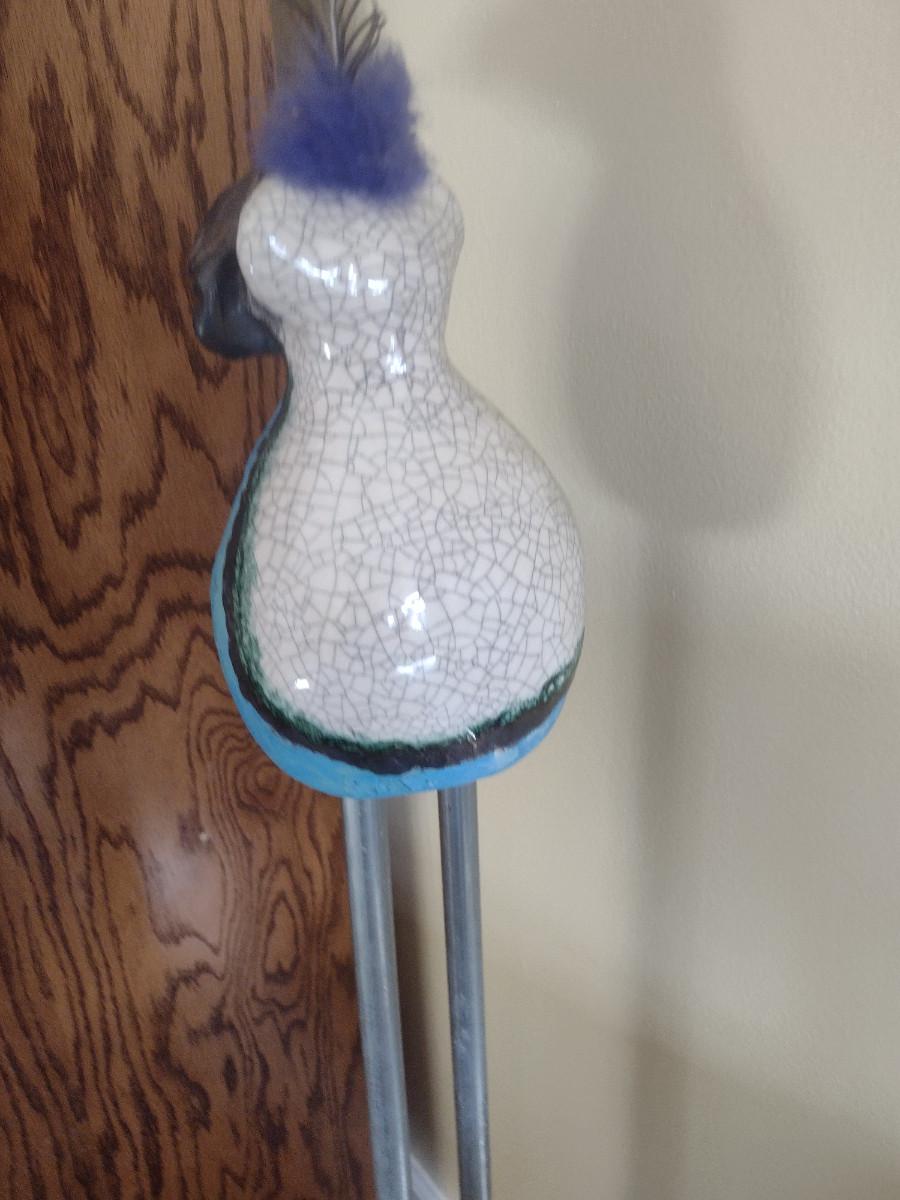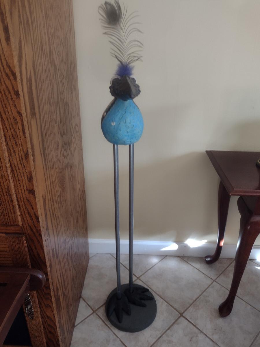 Hand Made Pottery Bird Statue- Approx 44 1/2" Tall. Item is on tube metal legs.