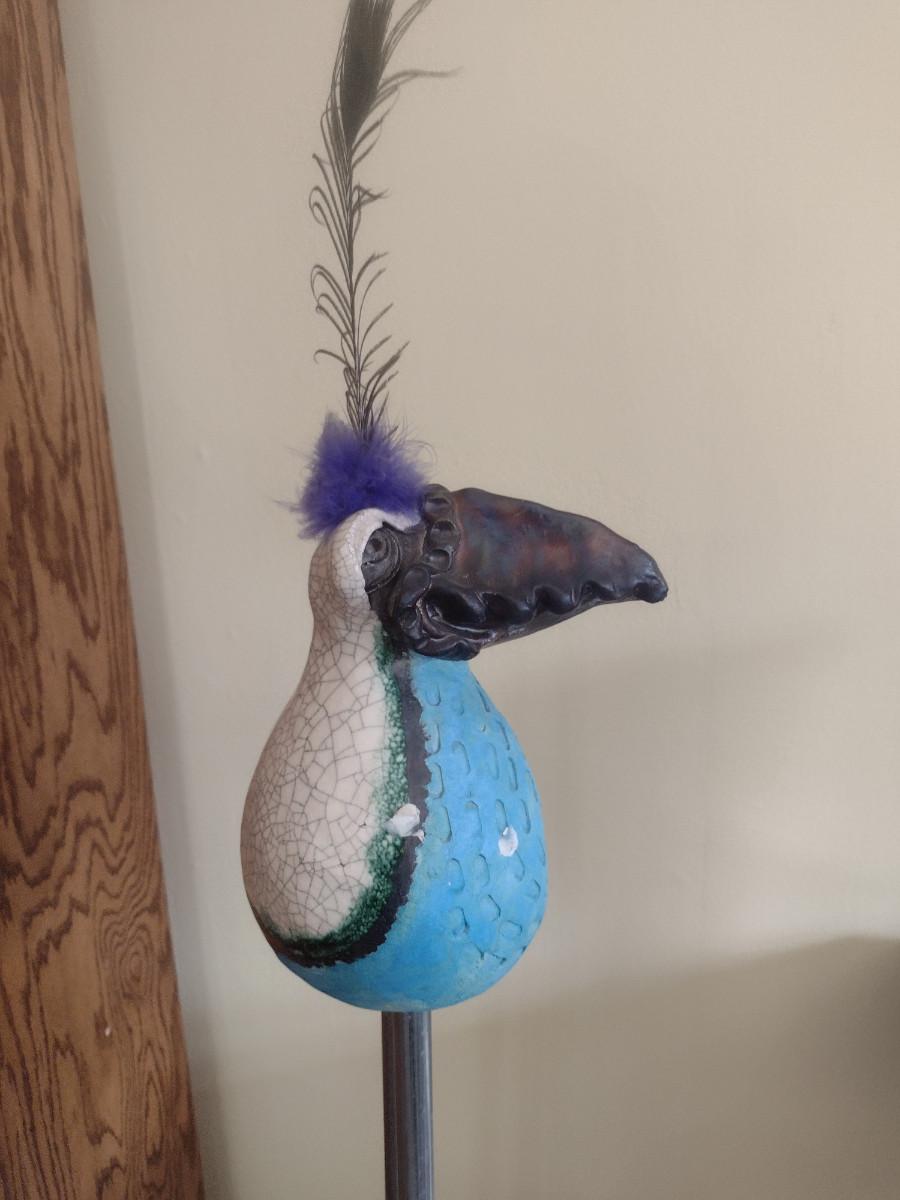 Hand Made Pottery Bird Statue- Signed by Artist- Approx 44 1/2" Tall