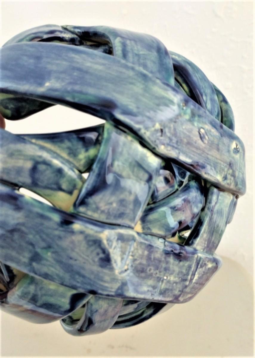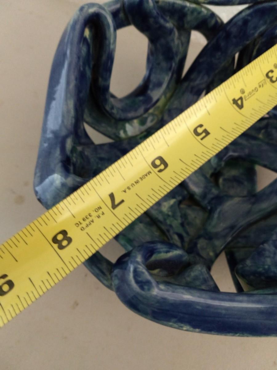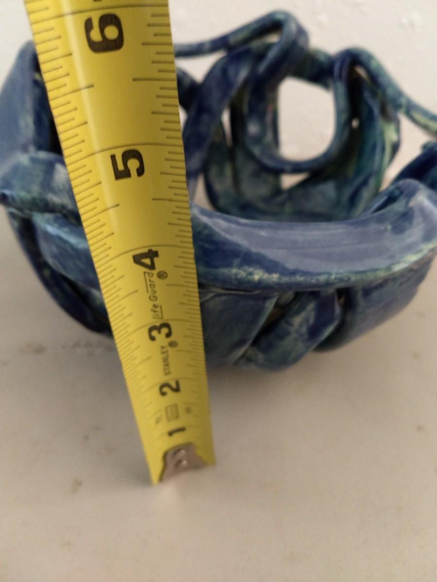Hand Made Pottery Flower Basket Ribbon Weave 8"x5"