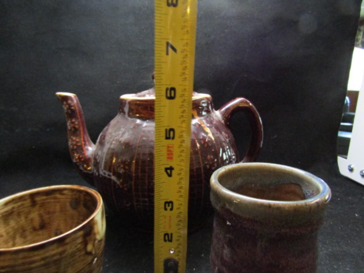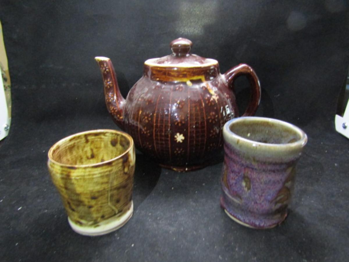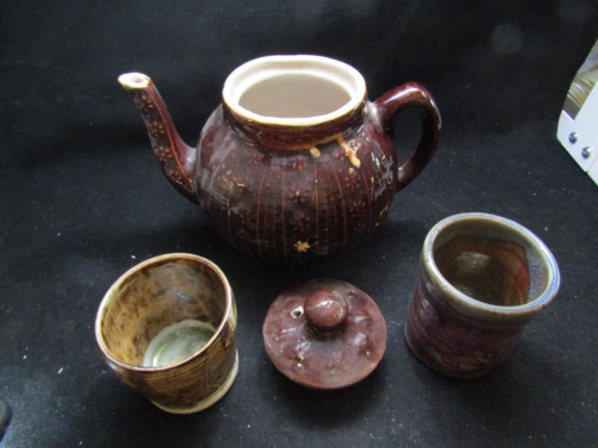 Hand Made Pottery- Teapot and Cups- Signed (#435)