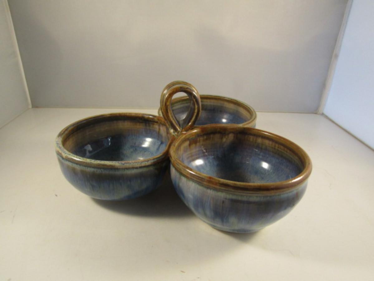 Hand Made Pottery Three Section Relish Server- Sunset Canyon Pottery: Austin, TX