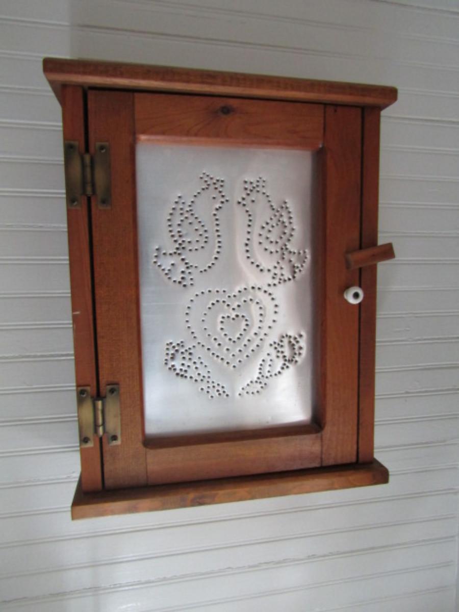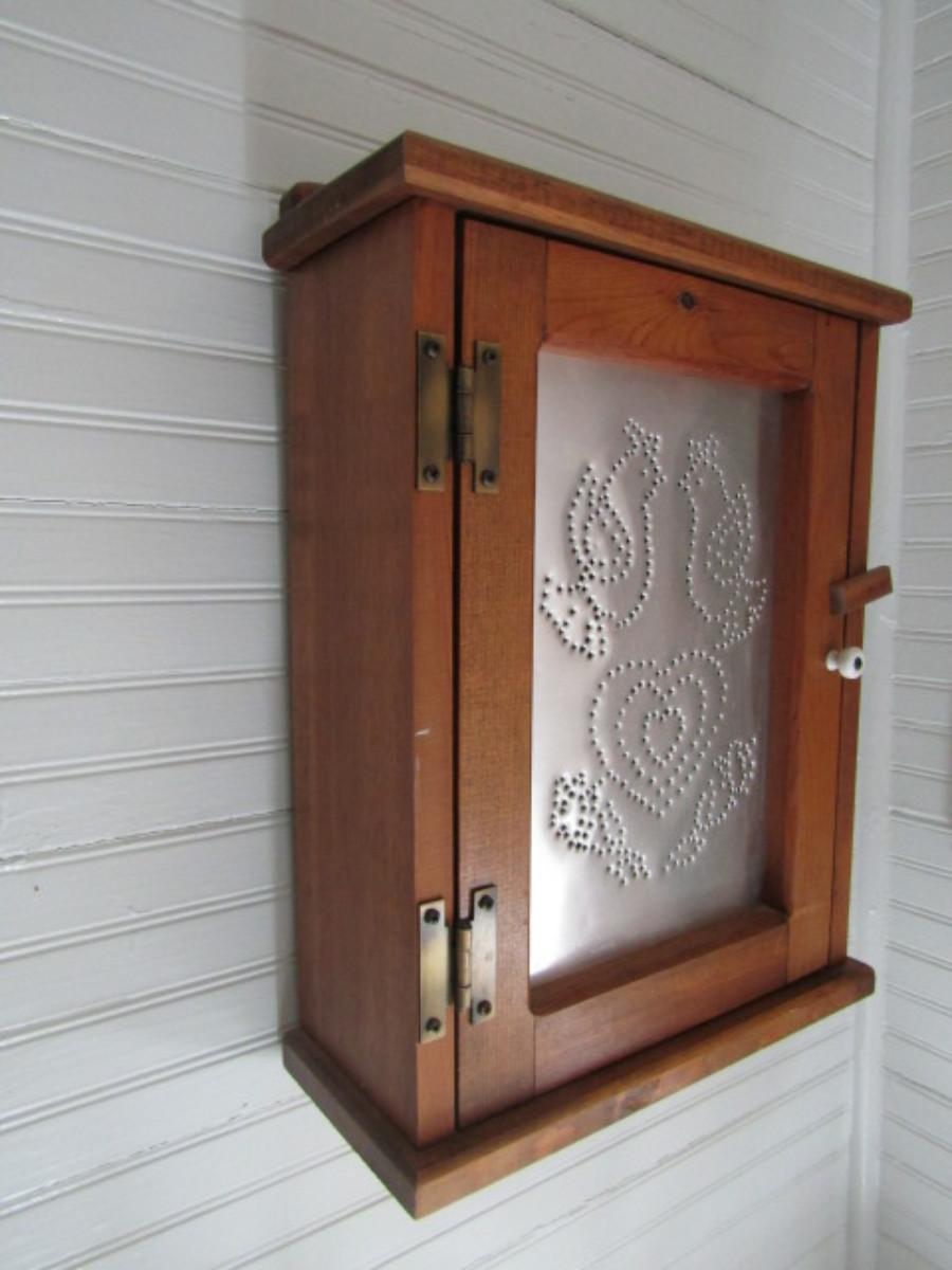 Hand Made Rustic Wood Storage Cabinet with Decorative Punched Metal Front