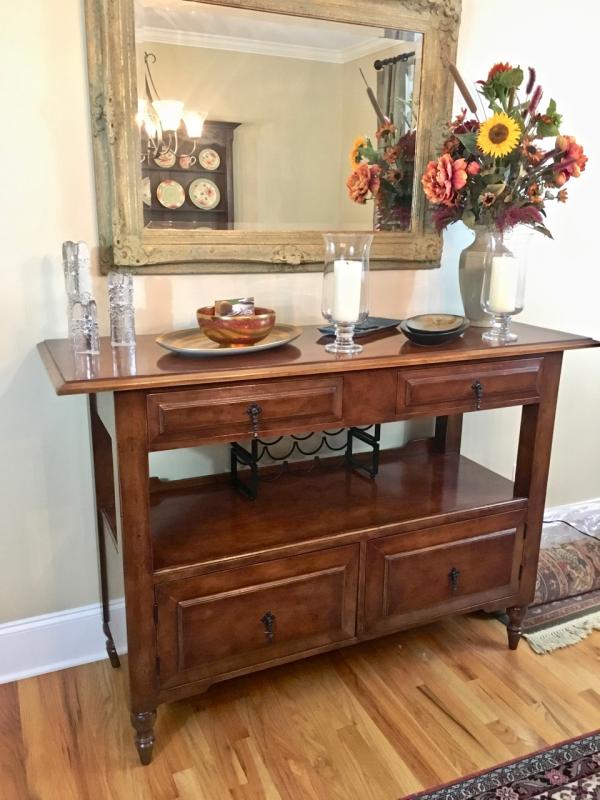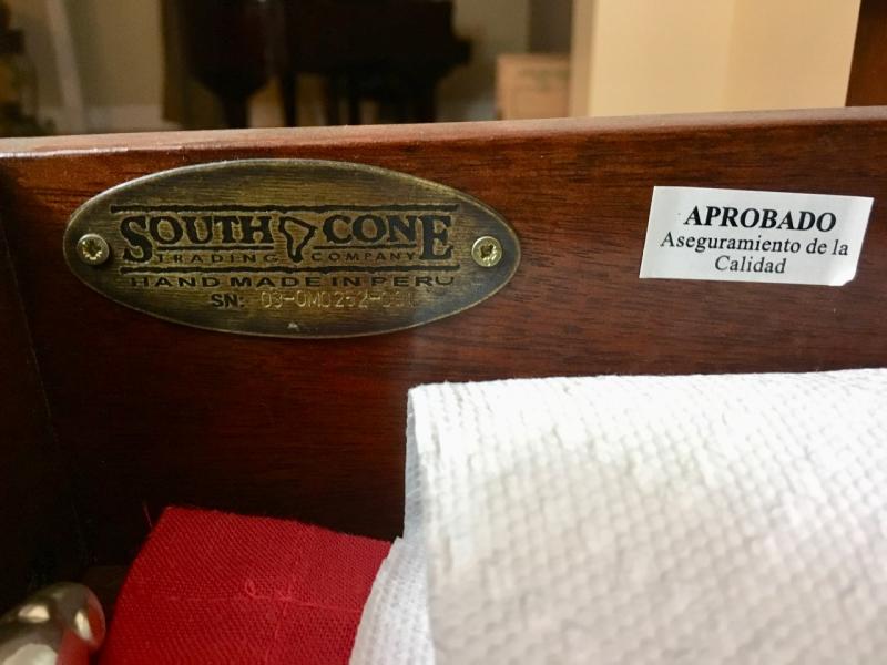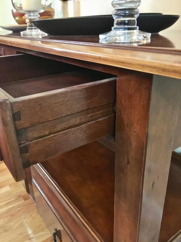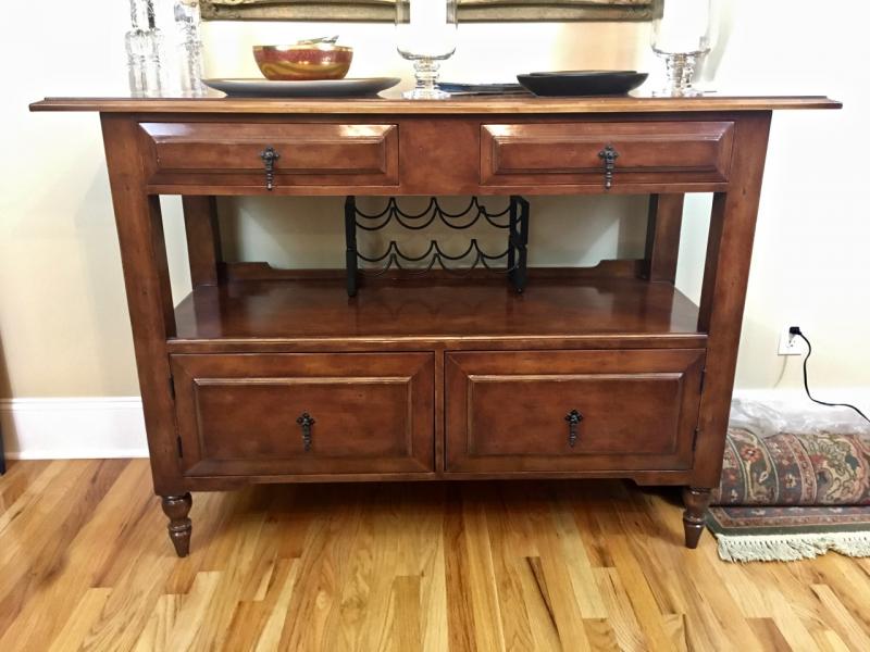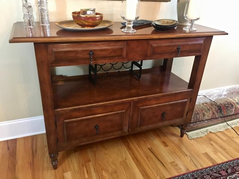 Hand made in Peru. Side buffet by South Cone Trading Company. Features include 4 drawers with plenty of room to store platers, table cloths and so much more. Other items pictured are not included. ***DIMENSIONS: 60"L X 41"H X 21"D | CONDITION: Excellent*** Local pick up only, Newtown CT