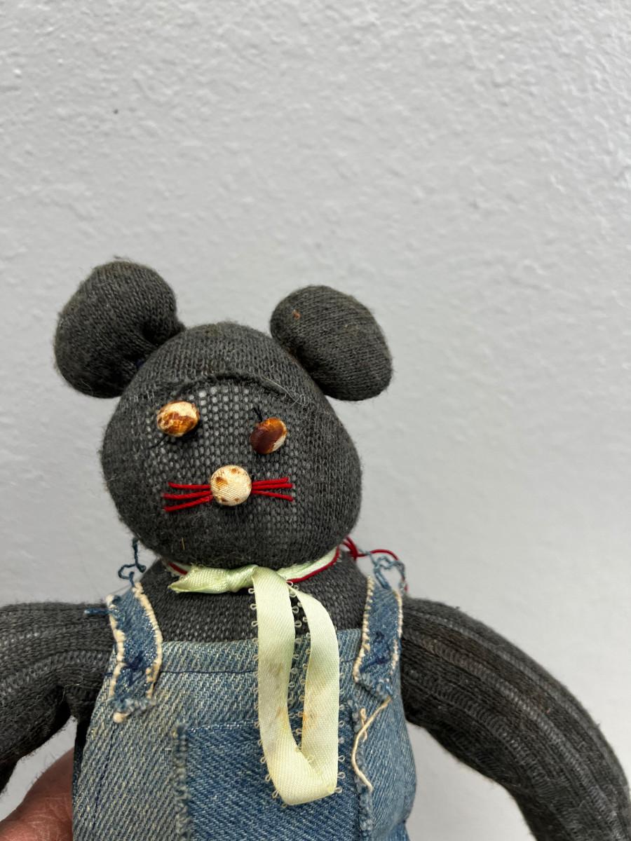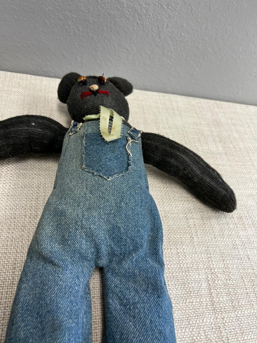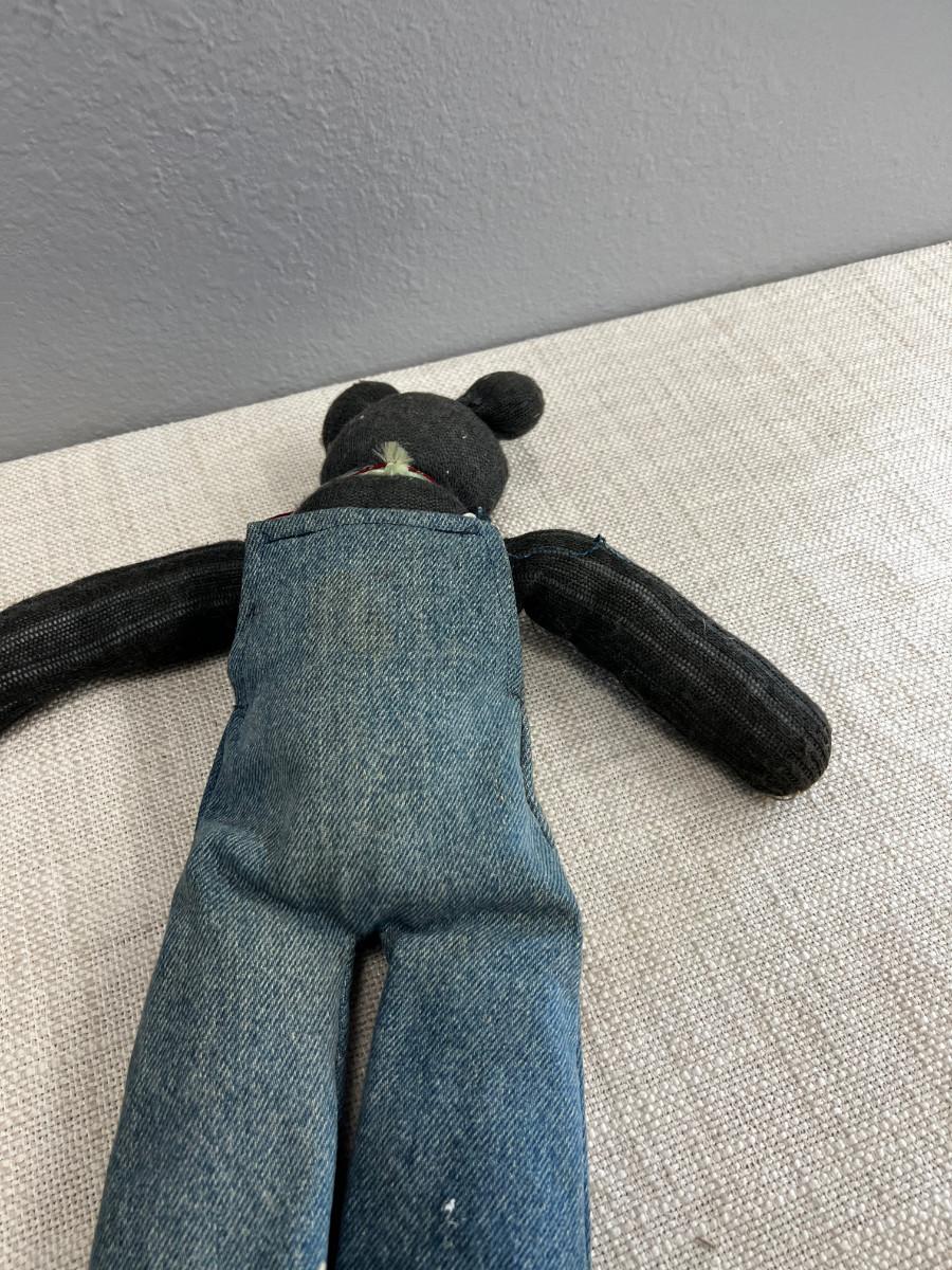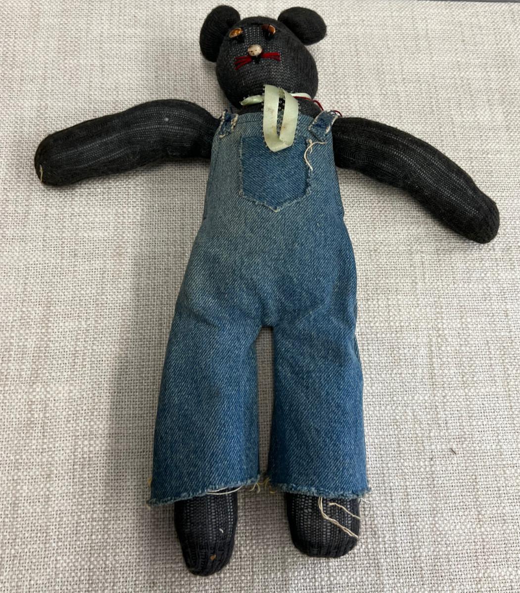 Hand Made Sock Bear with Denim Coveralls