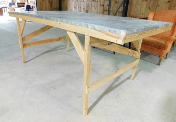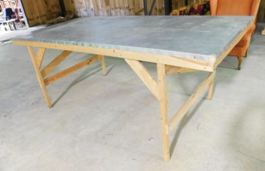 Hand Made Work Table with Metal Sheet Cover on Surface 95"48"x38"