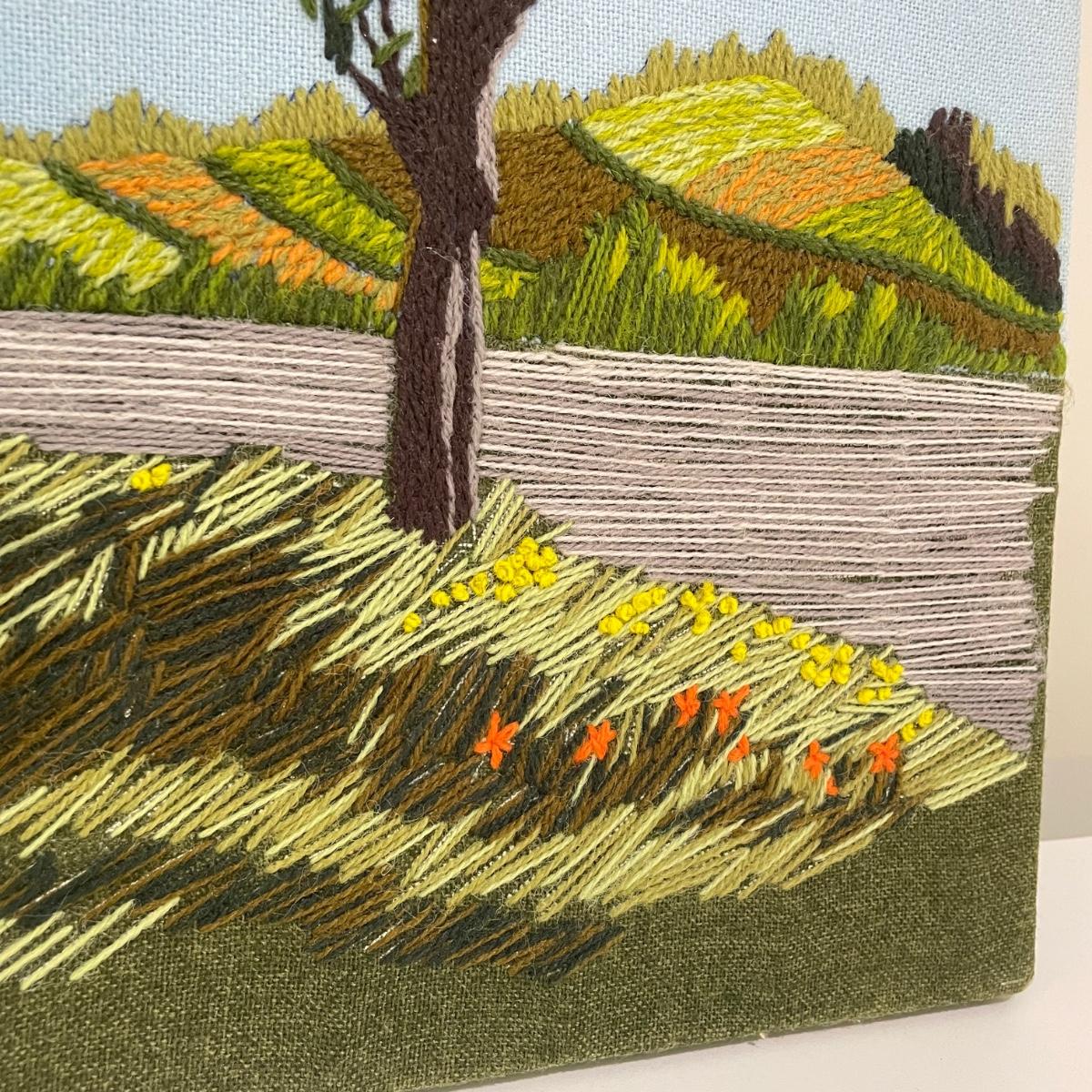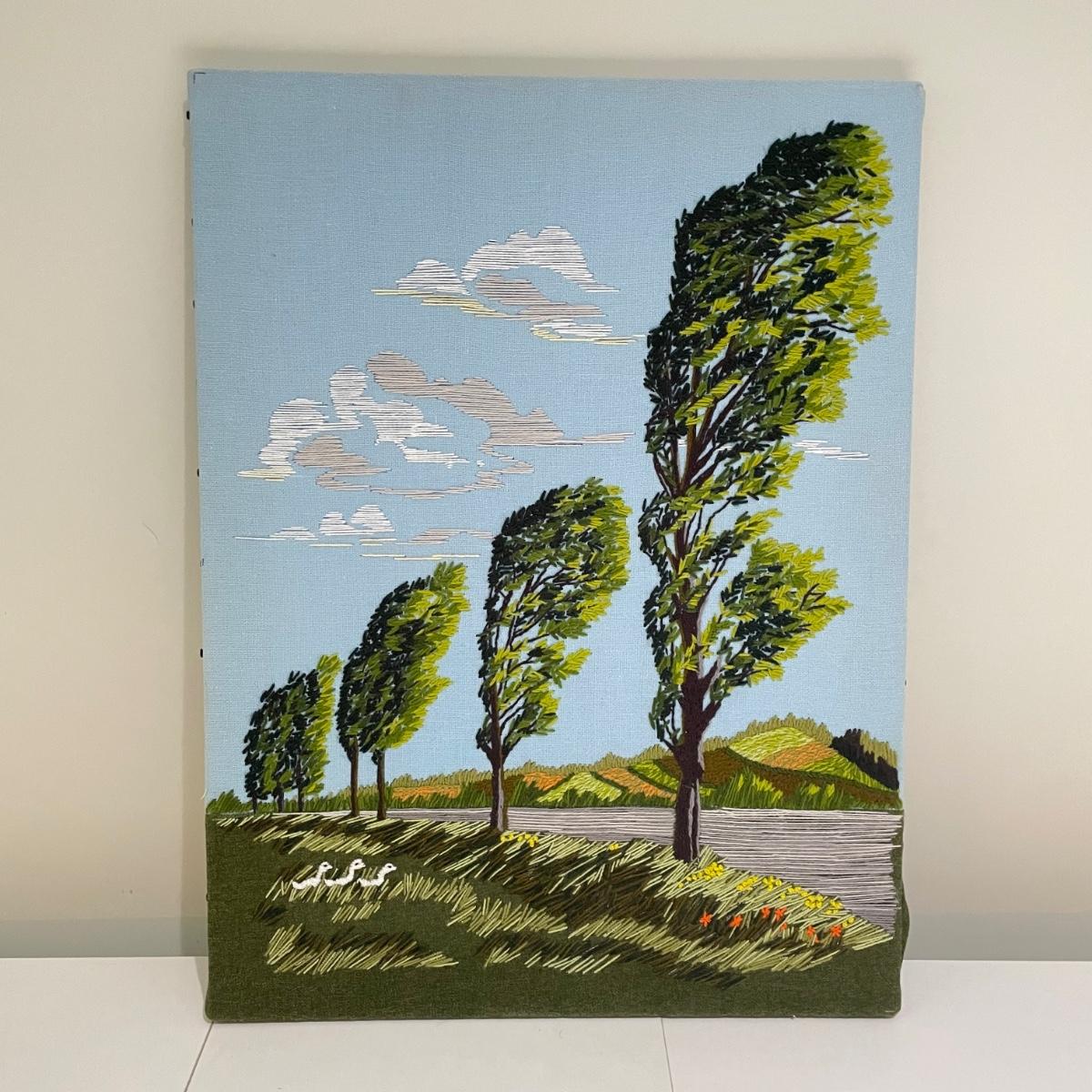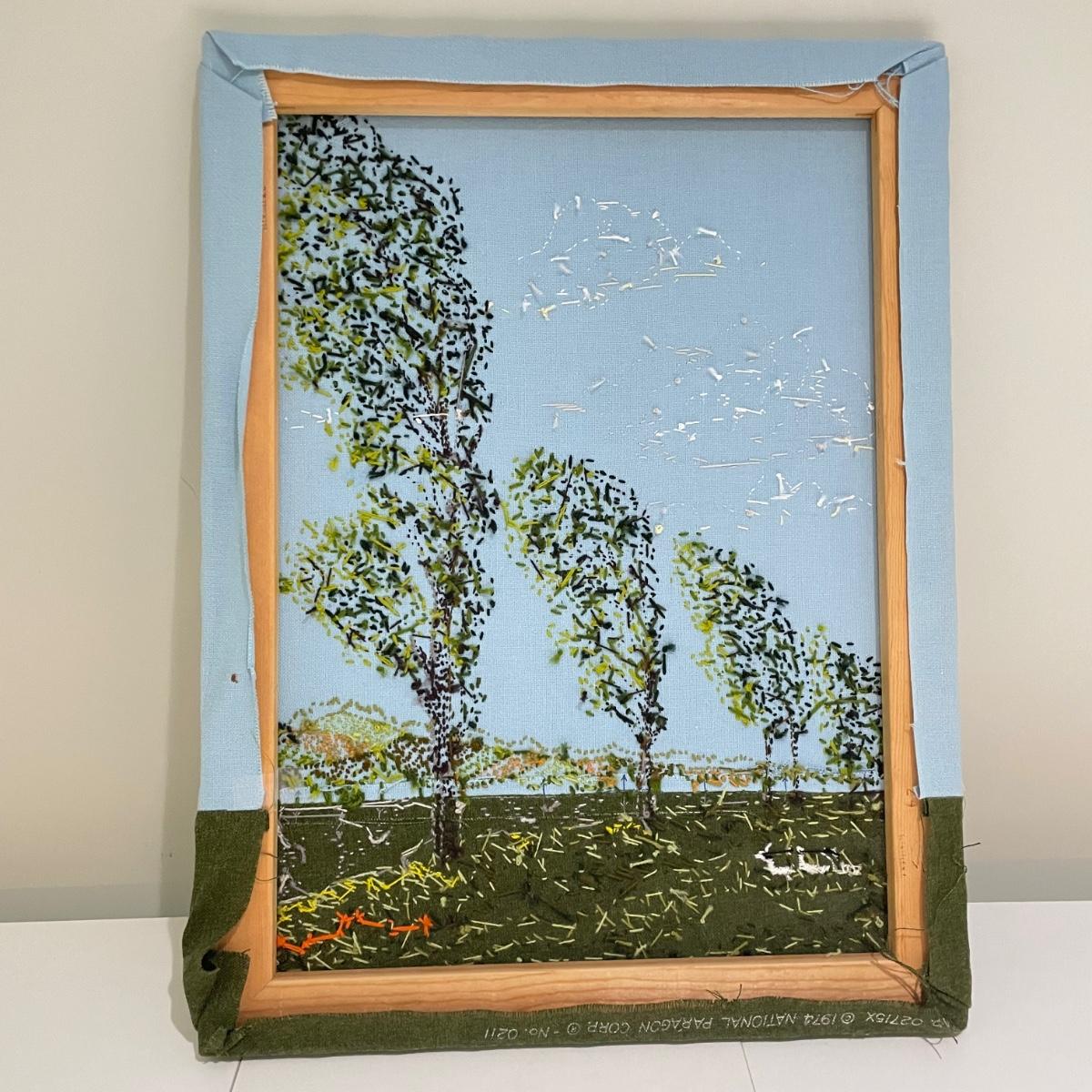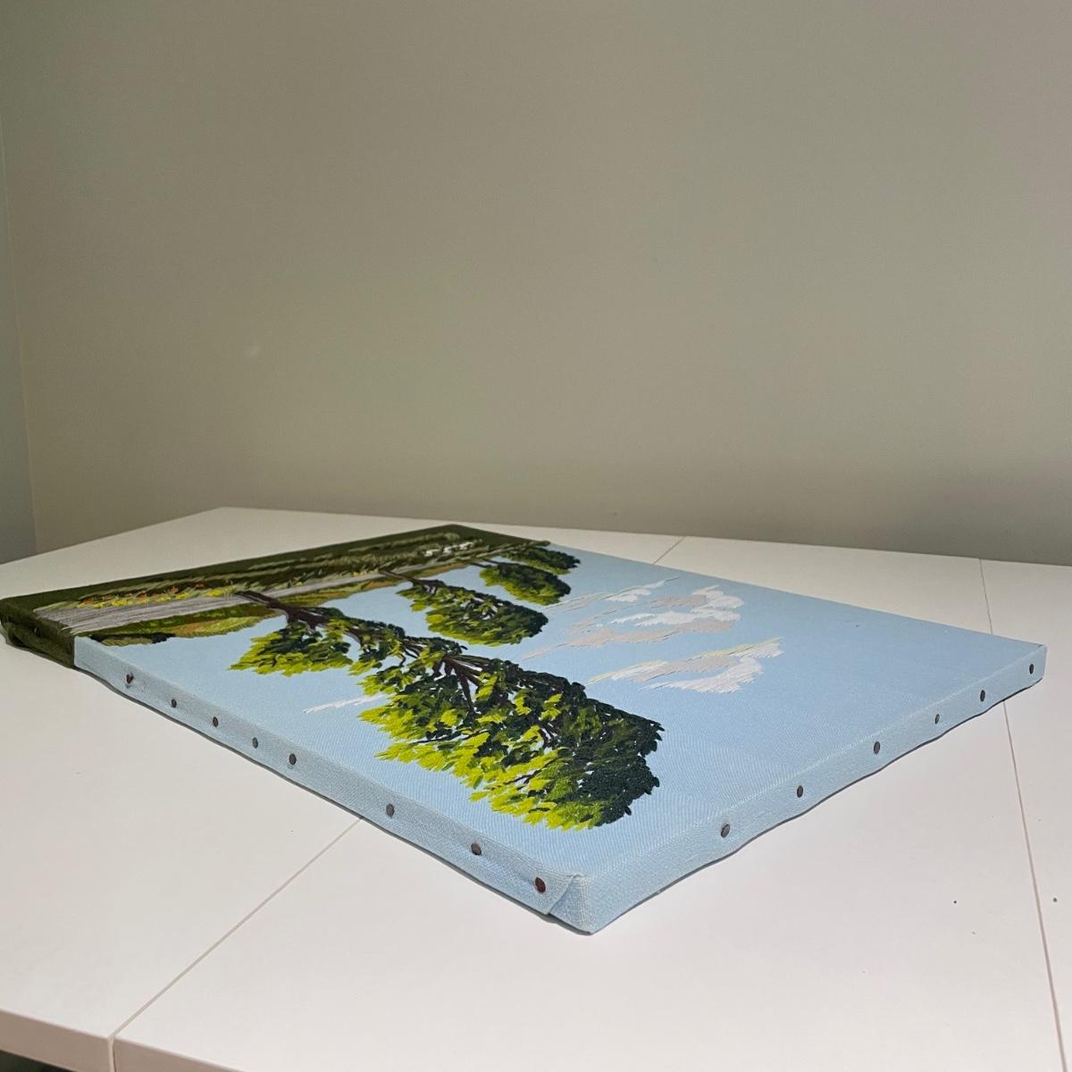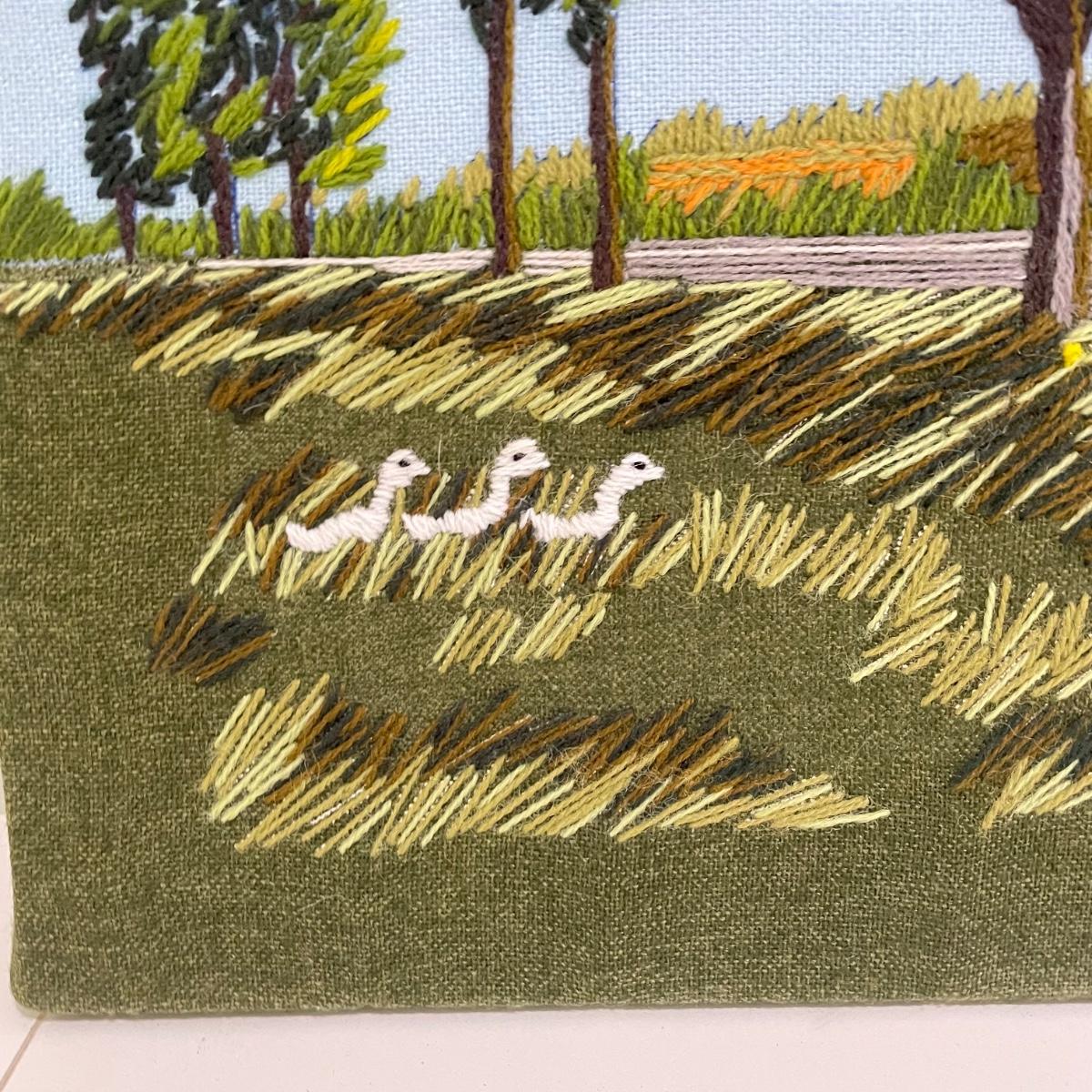 Three ducks near a gray lake on a cloth canvas. Art is well done and wood frame measures 18” x 24” and canvas is nailed on each side. See images. Shipping available. Please call our local UPS with dimensions at 828-252-6930 for a shipping quote prior to bidding.