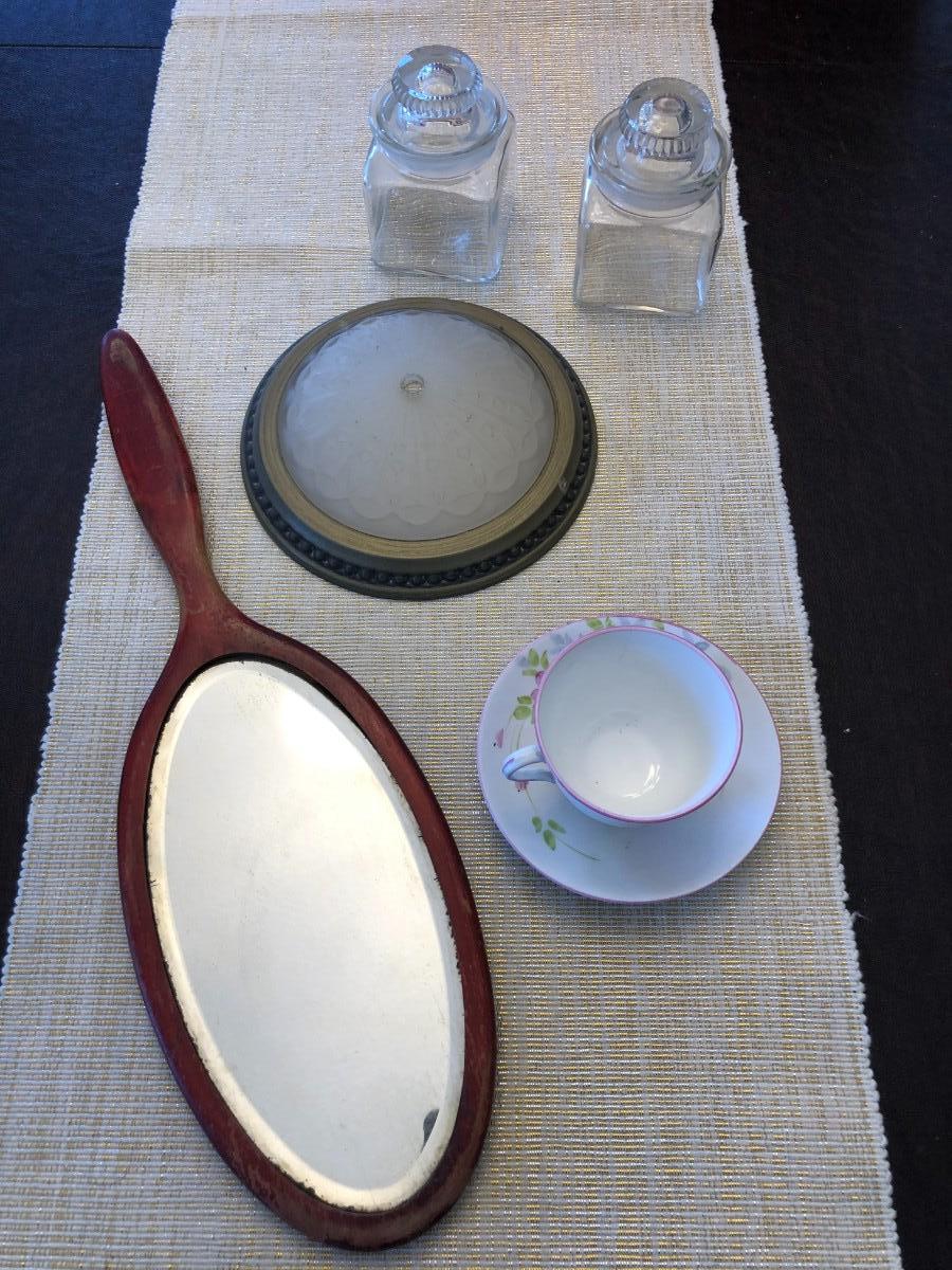 HAND MIRROR, TEA CUP/SAUCER AND MORE