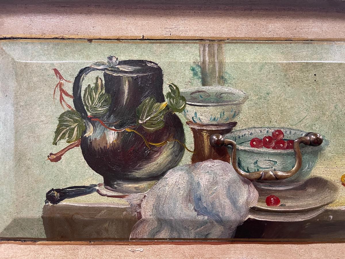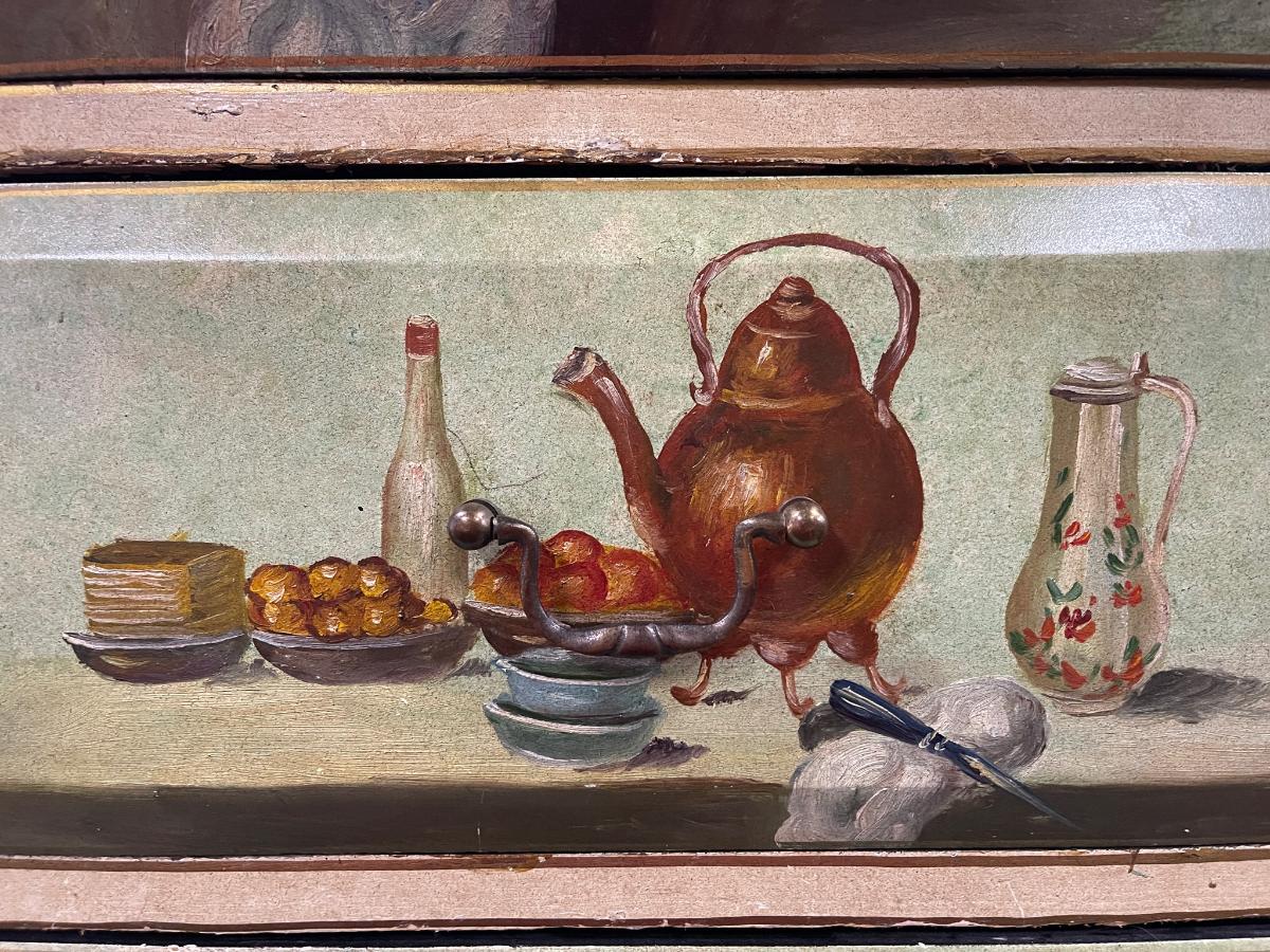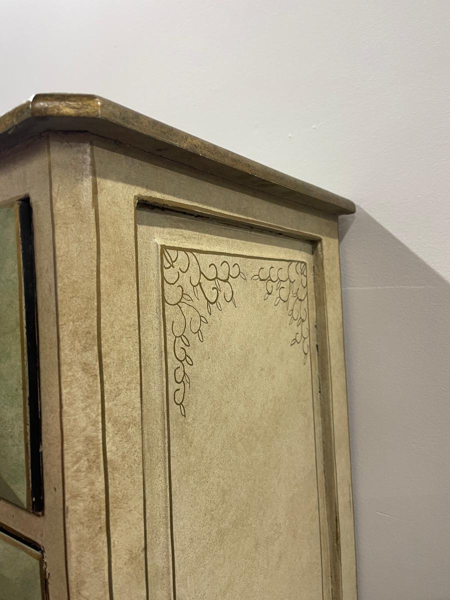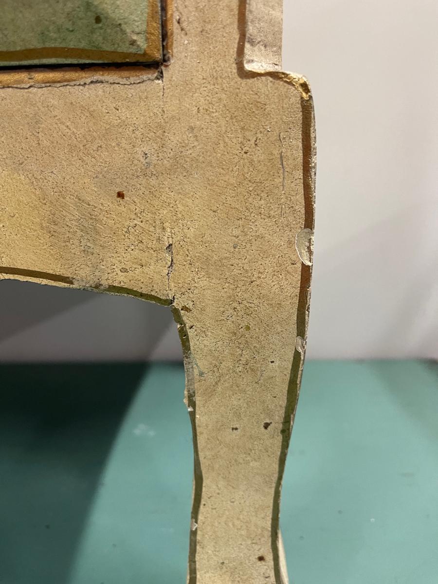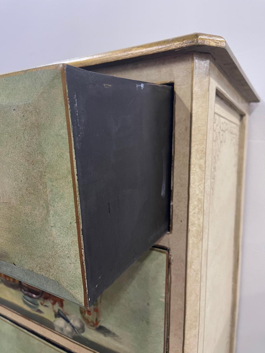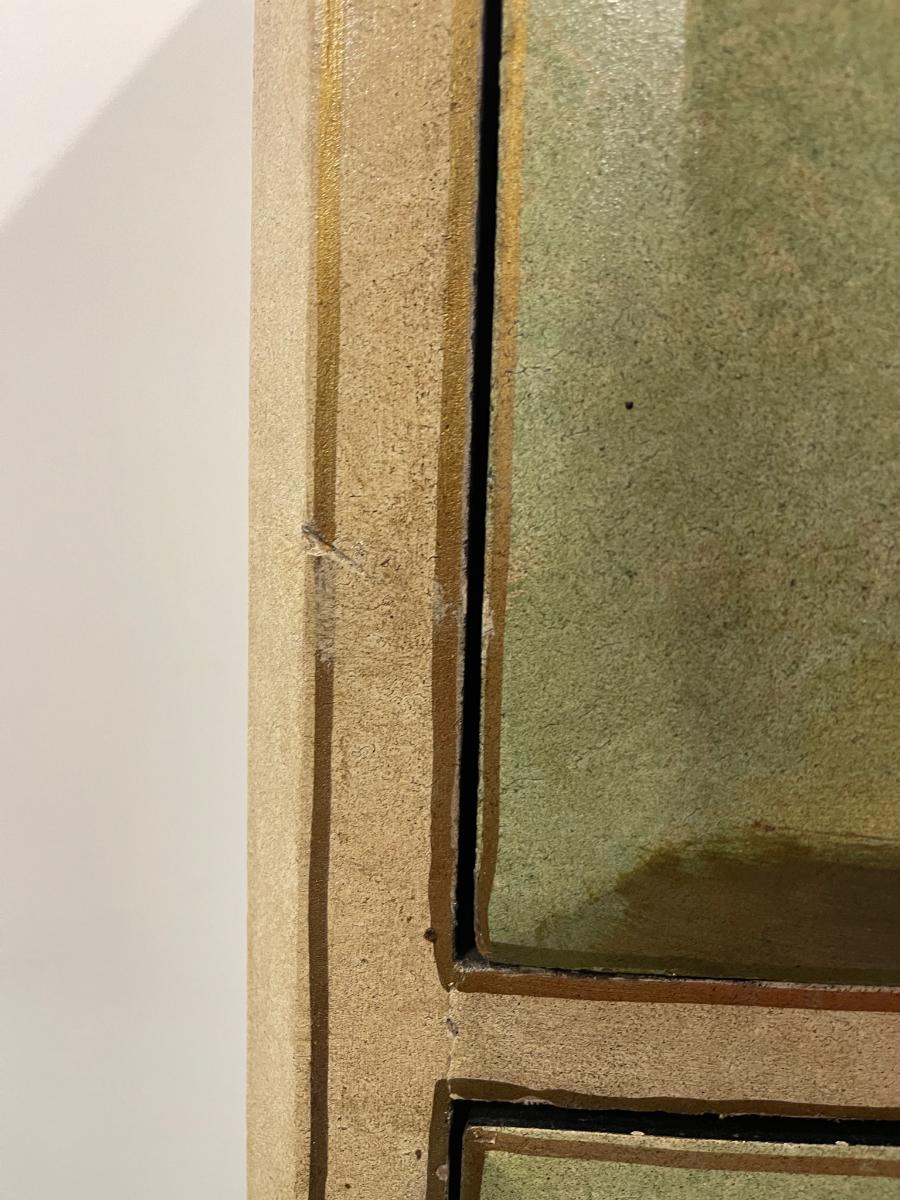 Hand painted 3 drawer chest. Good condition with some obvious dings and dents as shown. 14 1/2" deep x 33 1/4" high x 20 1/4" wide. # 1005