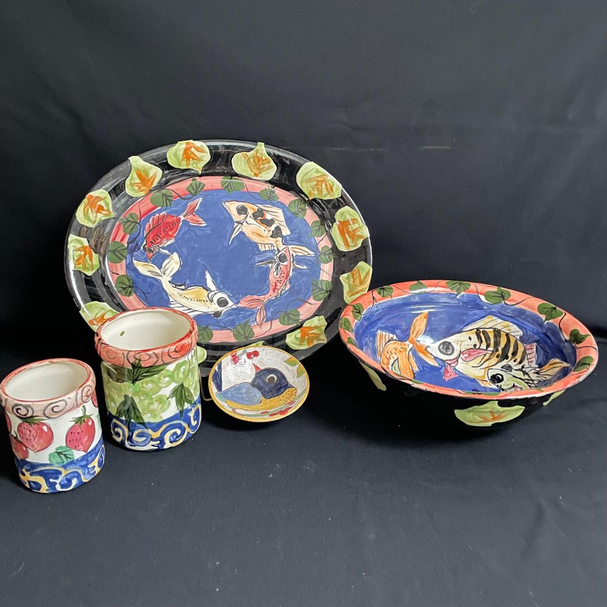 Hand Painted, Signed Ceramic Bowls, Platter and Jars (K-CE)