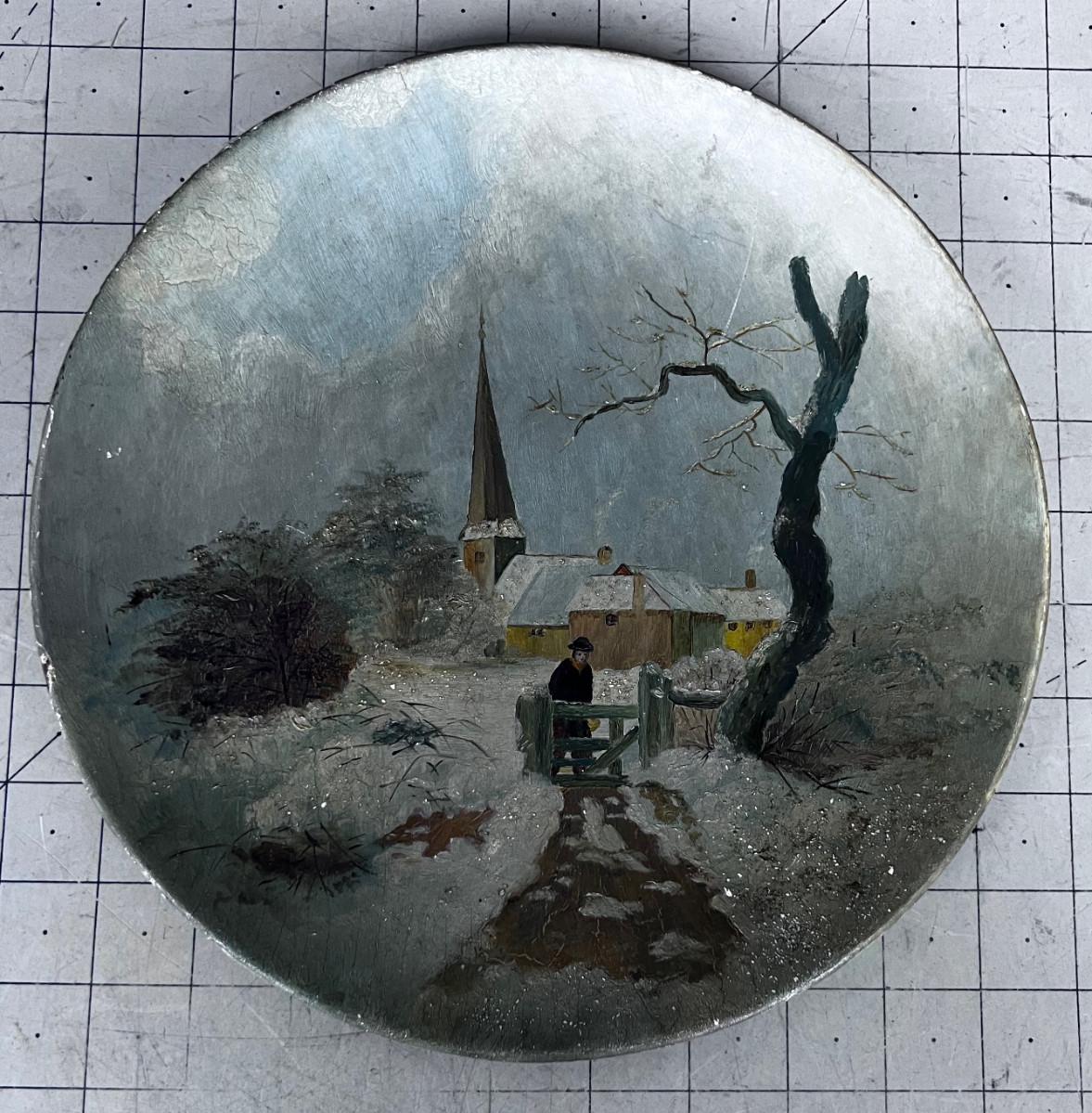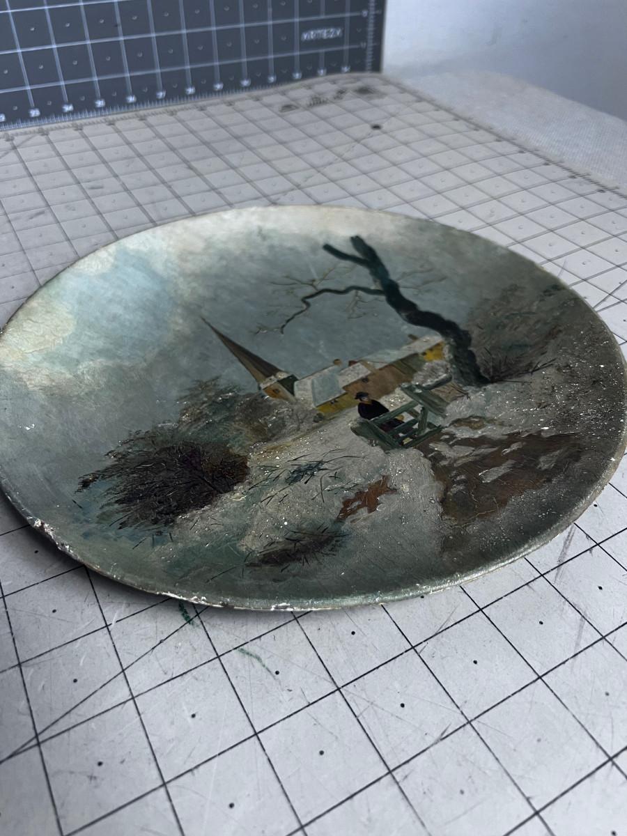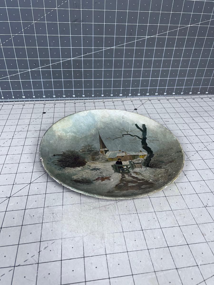Hand Painted Artist Board, Plate Shape Circa 1880 Dated