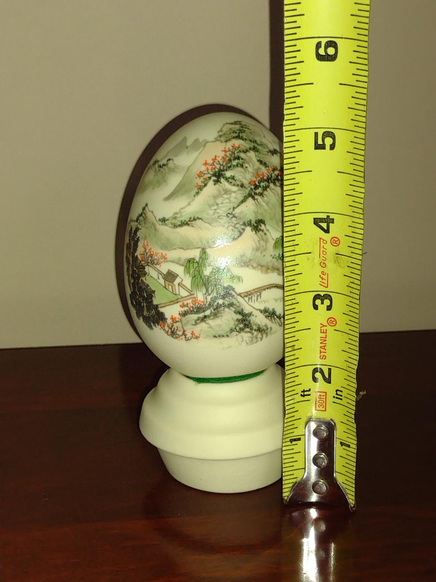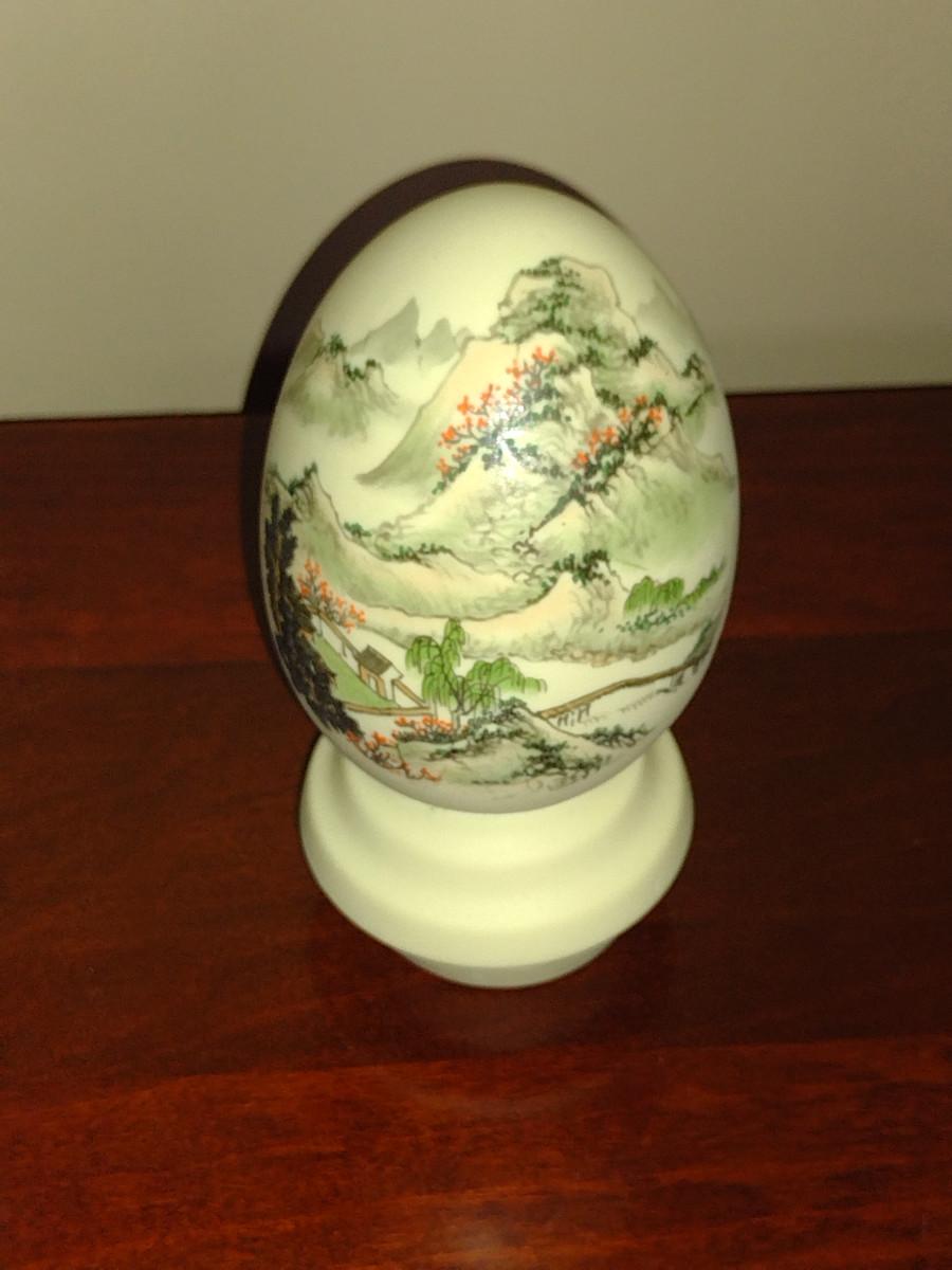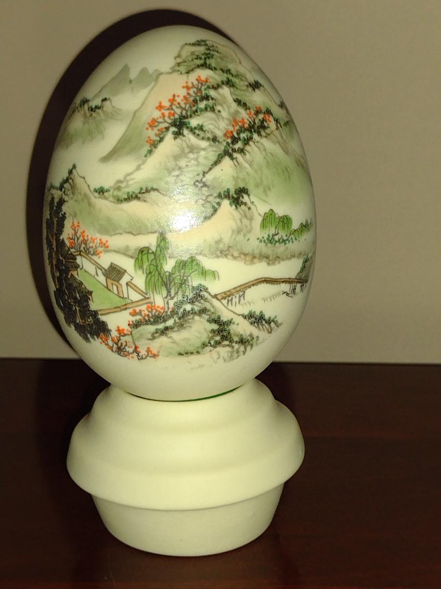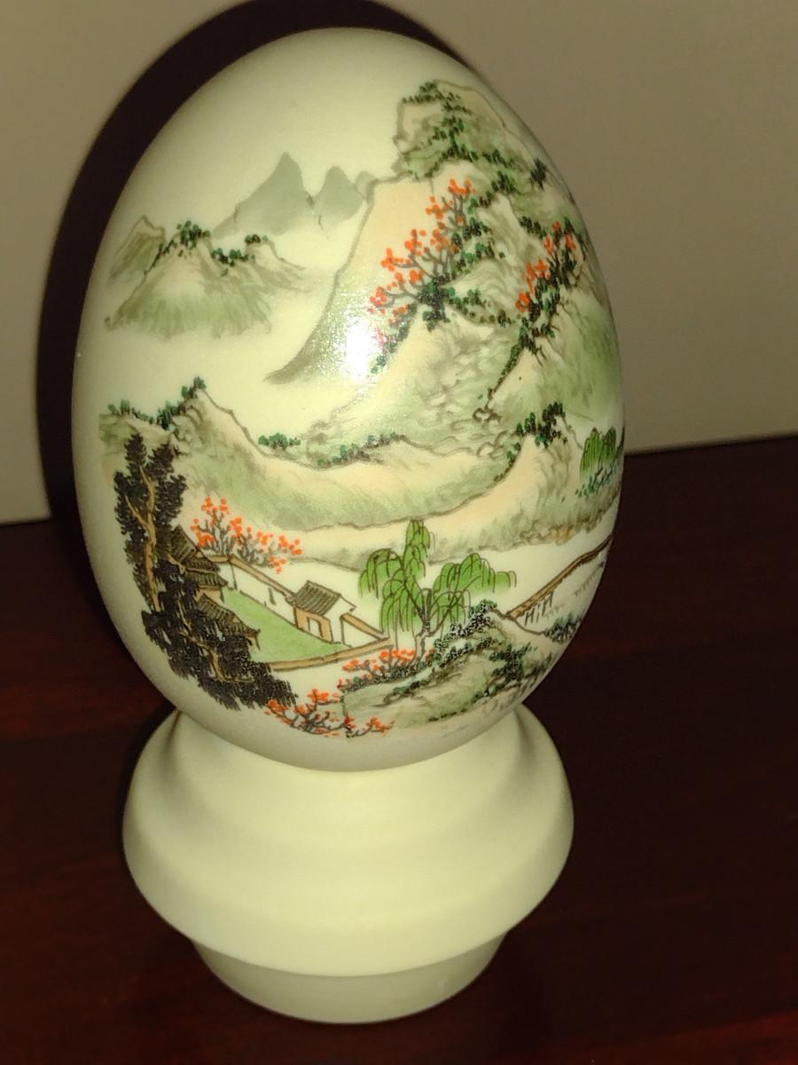 Hand Painted Asian Landscape on Porcelain Egg with Stand