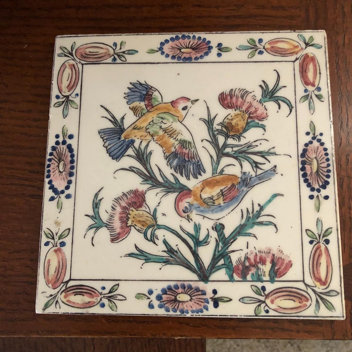 Hand painted Bird Tile, Nest w Eggs & Floral Arrangement (MB-KM)