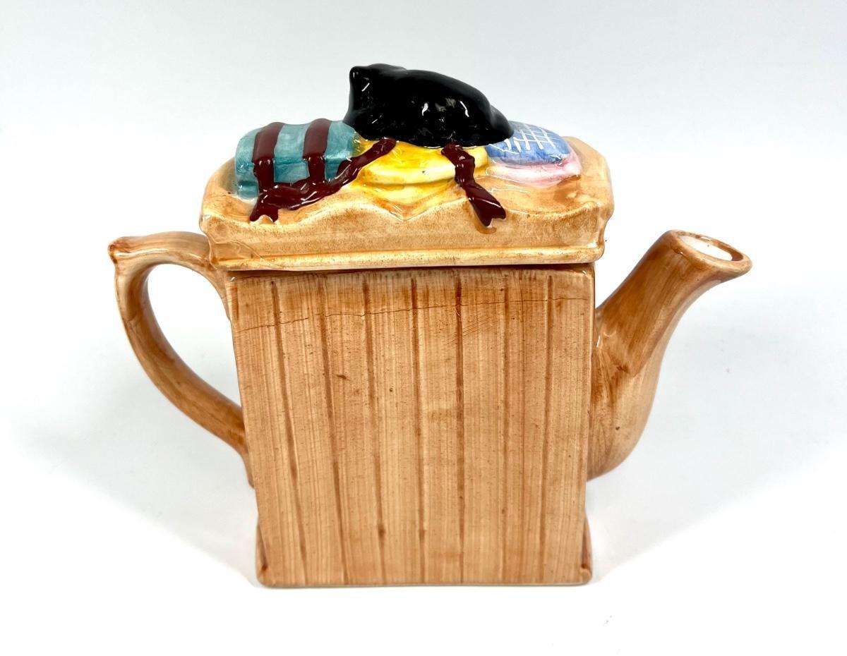 Hand Painted Black Cat on Dresser Novelty Ceramic Teapot. Good condition.