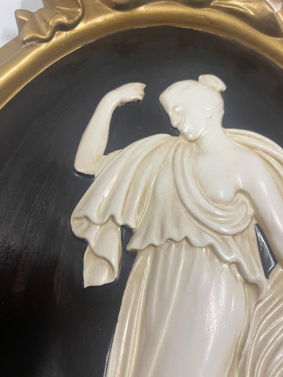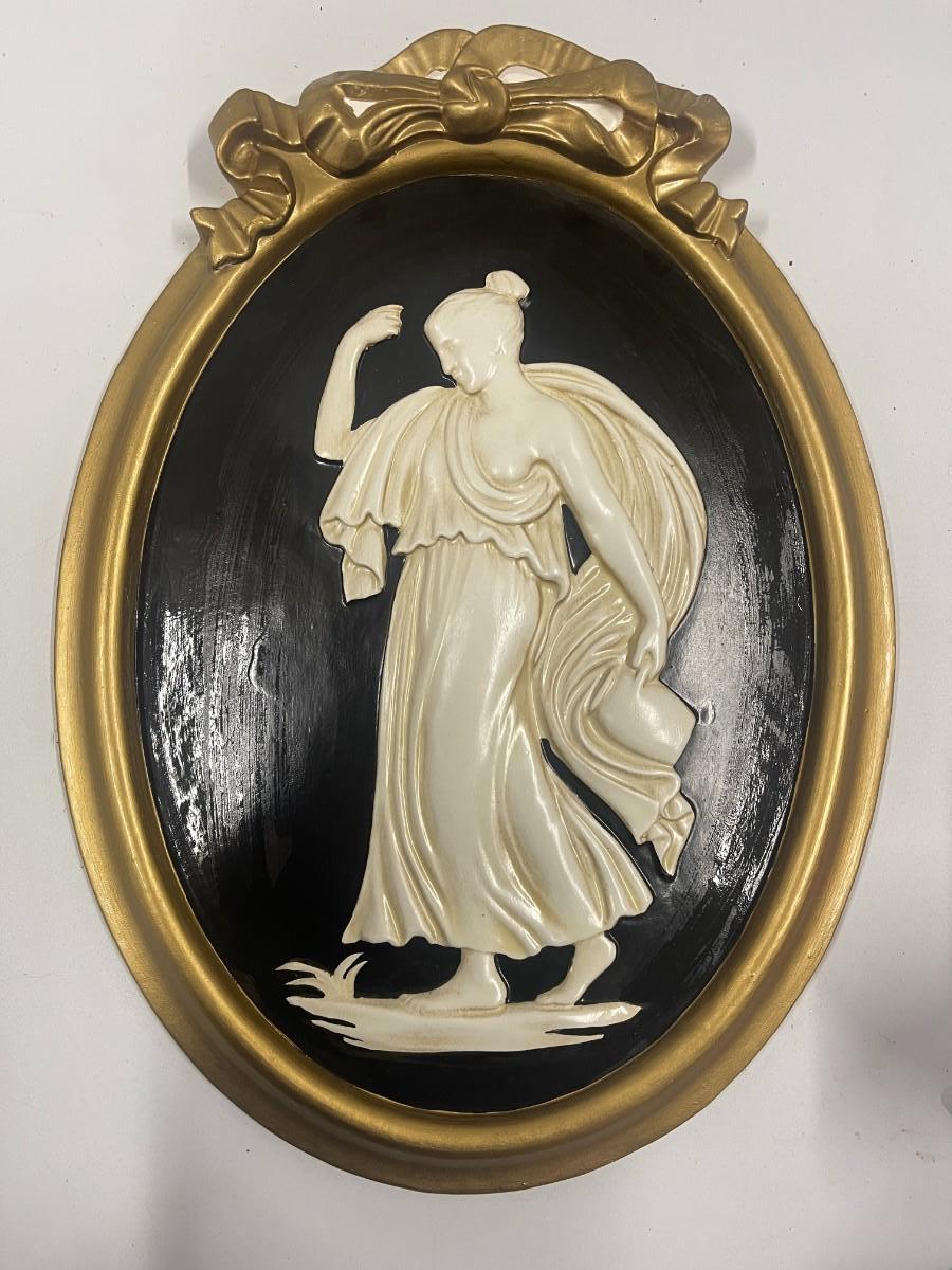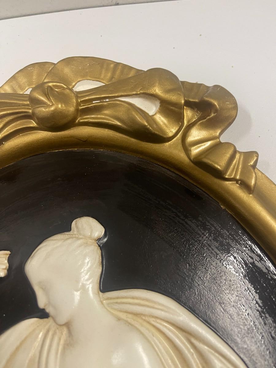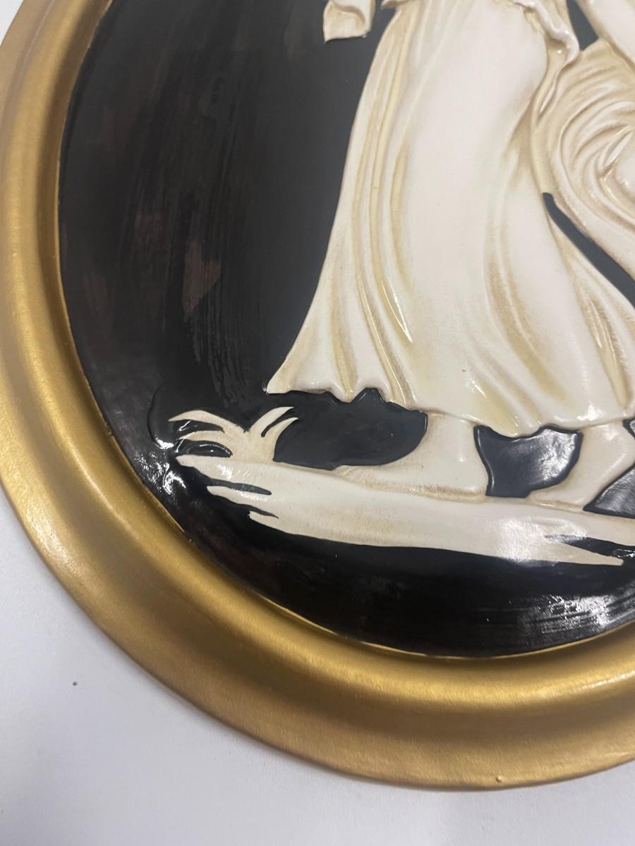 Hand Painted Black & White Ceramic Cameo Reliefs, 15" x 11". Very good condition. Made in Italy.