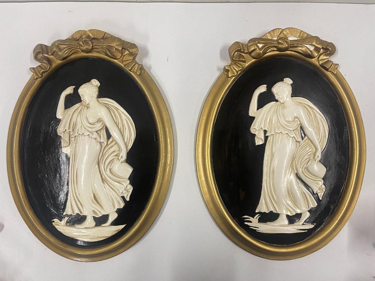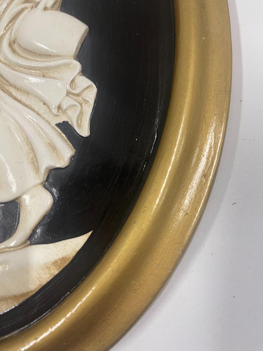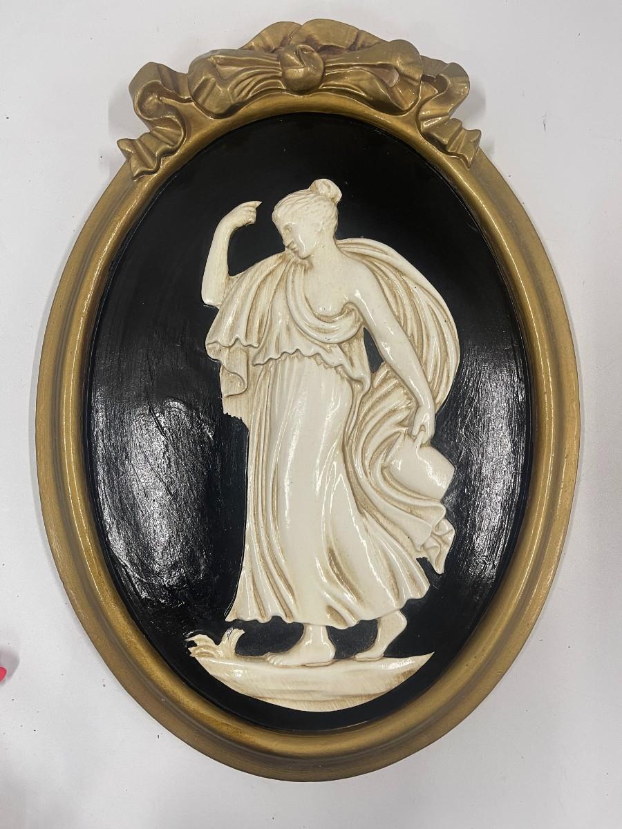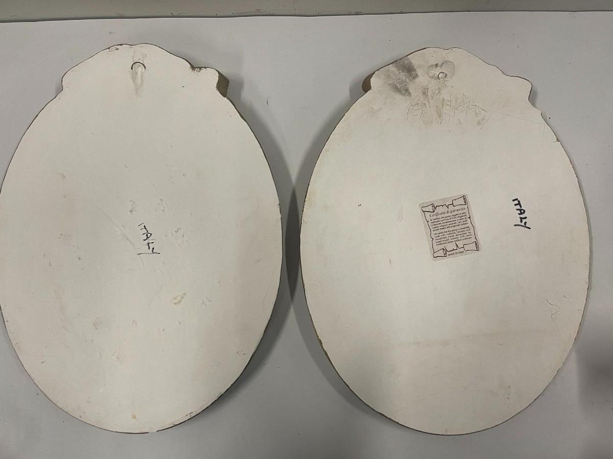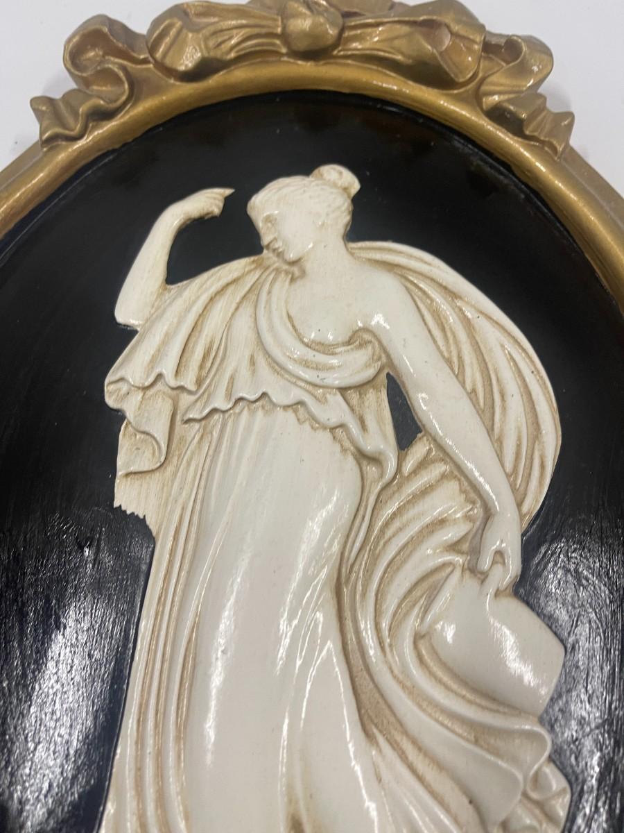 Hand Painted Black & White Ceramic Cameo Reliefs, 15" x 11". Very good condition. Made in Italy.