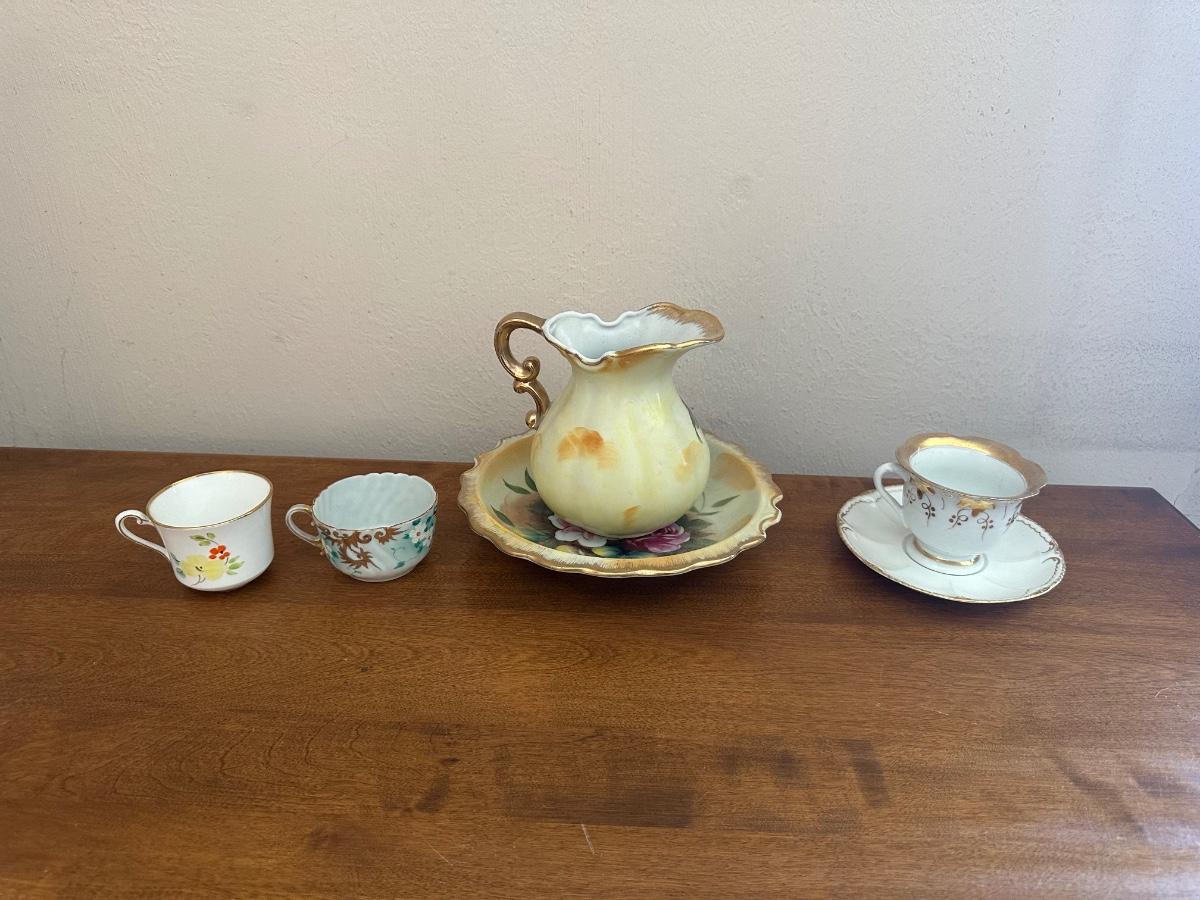 HAND PAINTED BONE CHINA WASH BOWL AND PITCHER