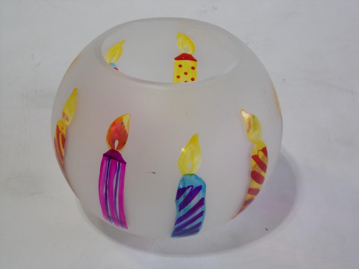 Hand painted bowl, frosted, about 4-1/2"x6'dia