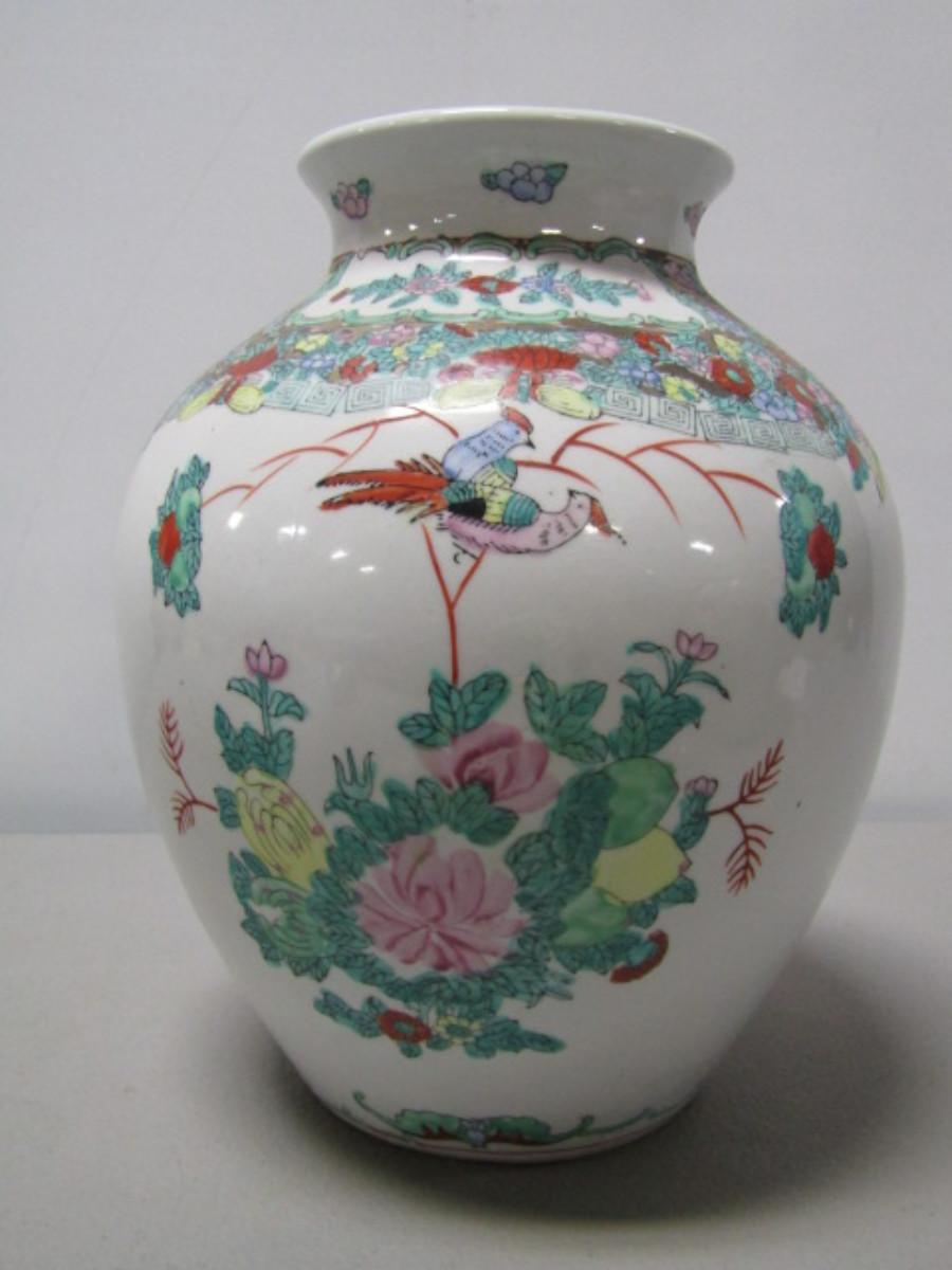 Hand Painted Ceramic Asian Theme Ginger Jar Shaped Vase- Approx. 10 1/2" Tall- Stamped on Bottom (#2of 2)