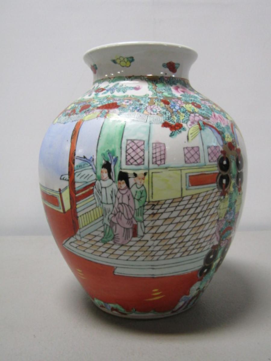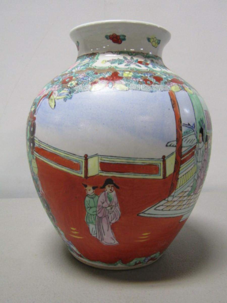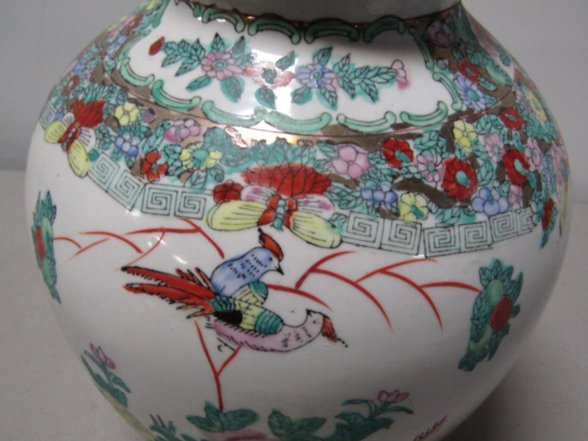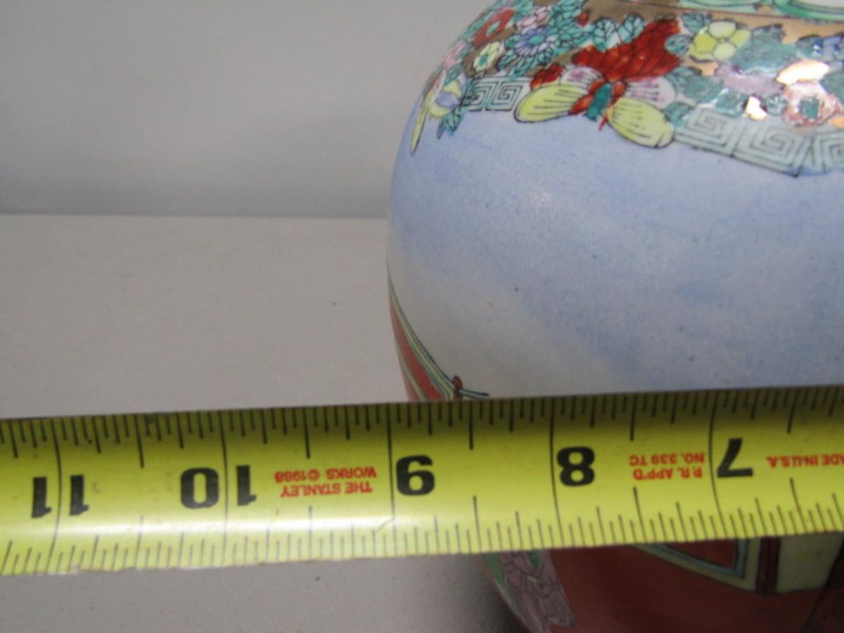 Hand Painted Ceramic Asian Theme Ginger Jar Shaped Vase- Approx. 10 1/2" Tall- Stamped on Bottom (#2 of 2)