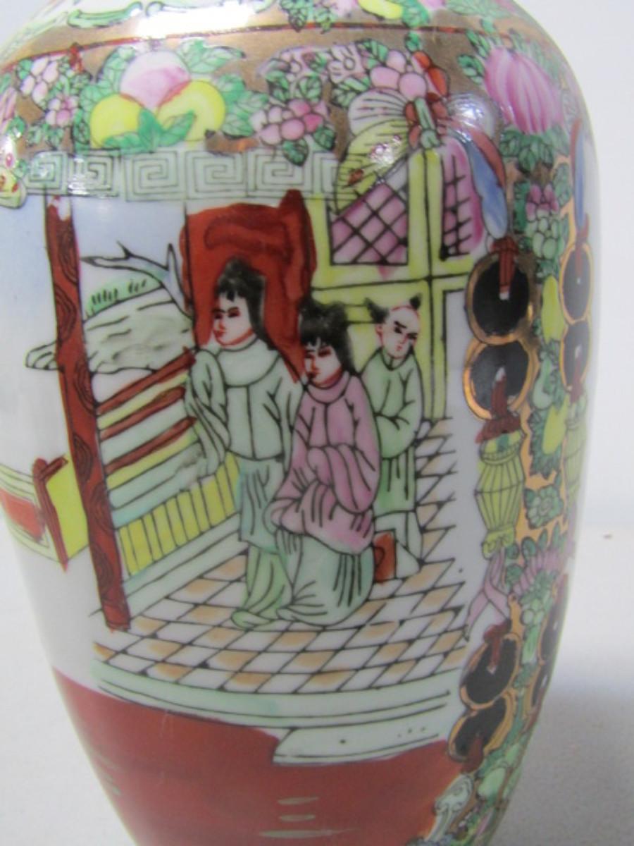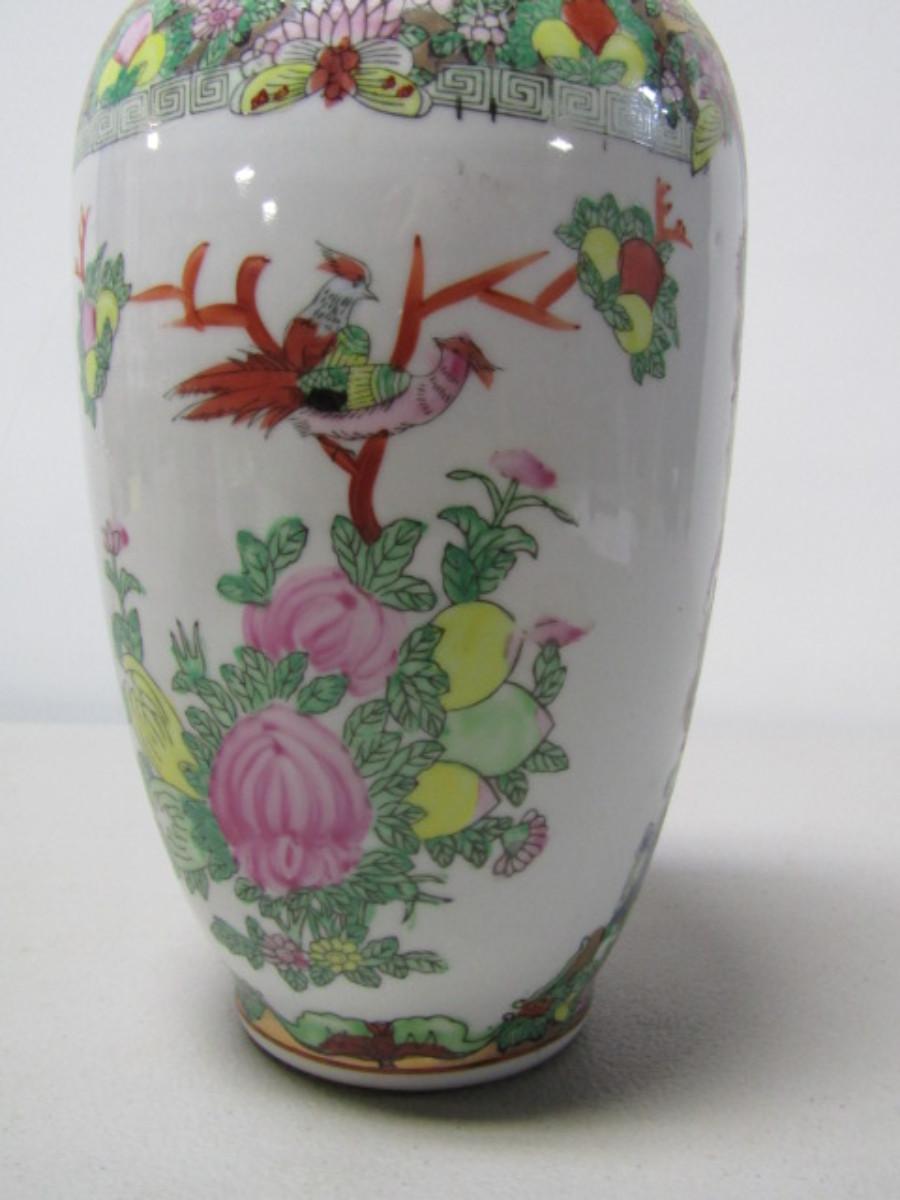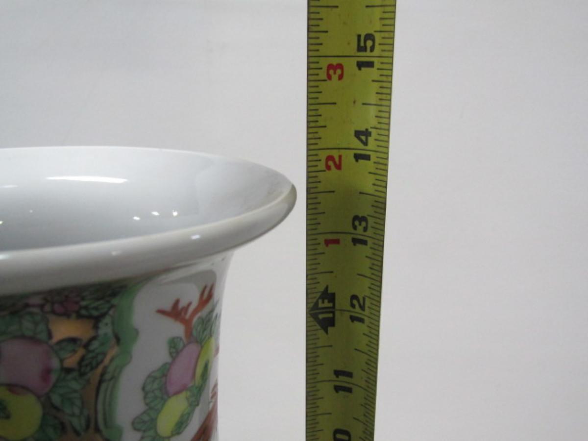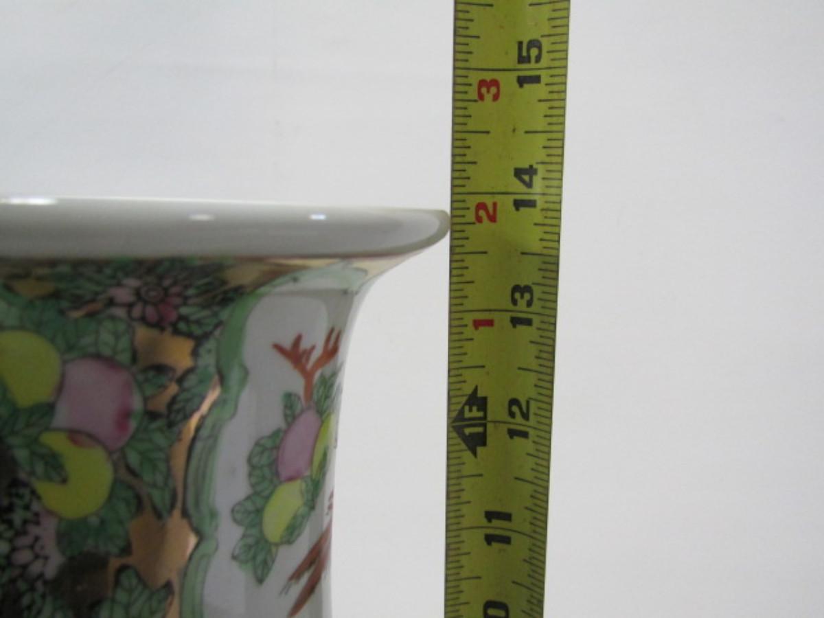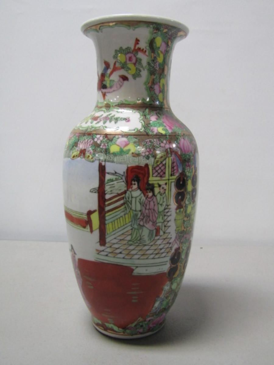 Hand Painted Ceramic Asian Theme Vase- Approx. 13 1/2" Tall- Stamped on Bottom (#1 of 2)