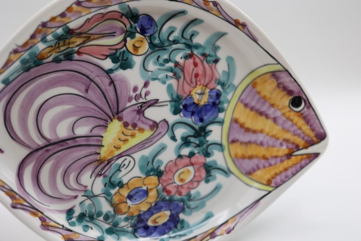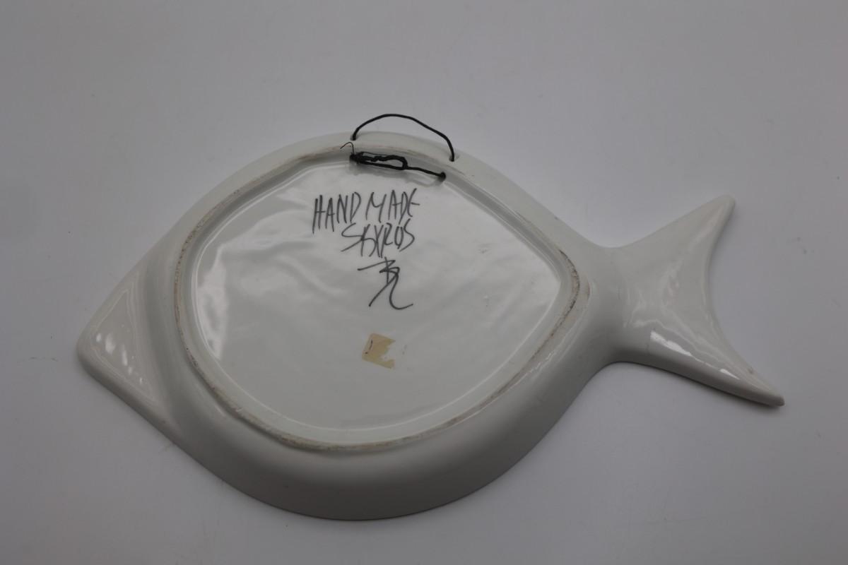 Vintage hand painted ceramic fish plate, marked, Skyros, made in Greece and signed.