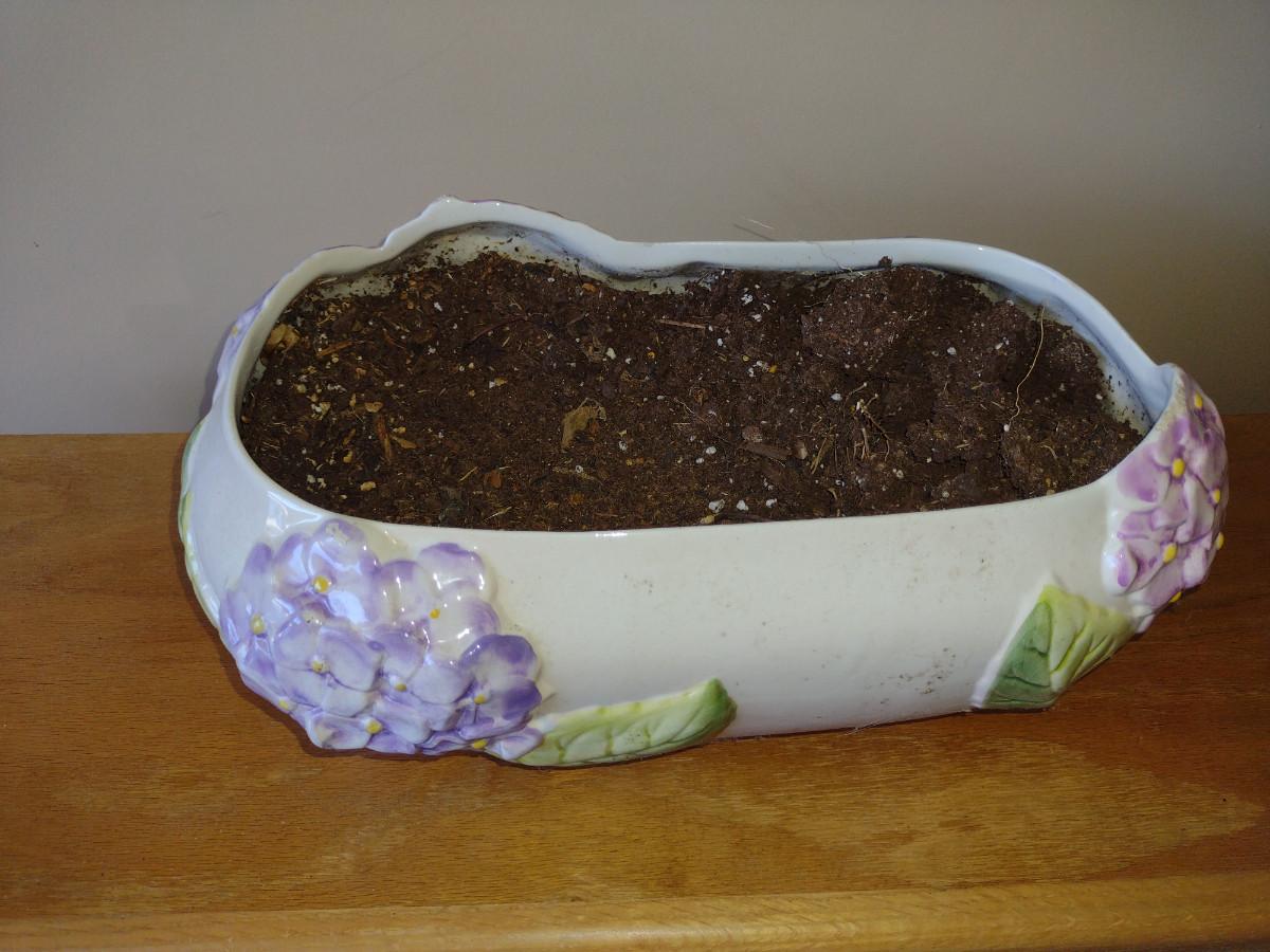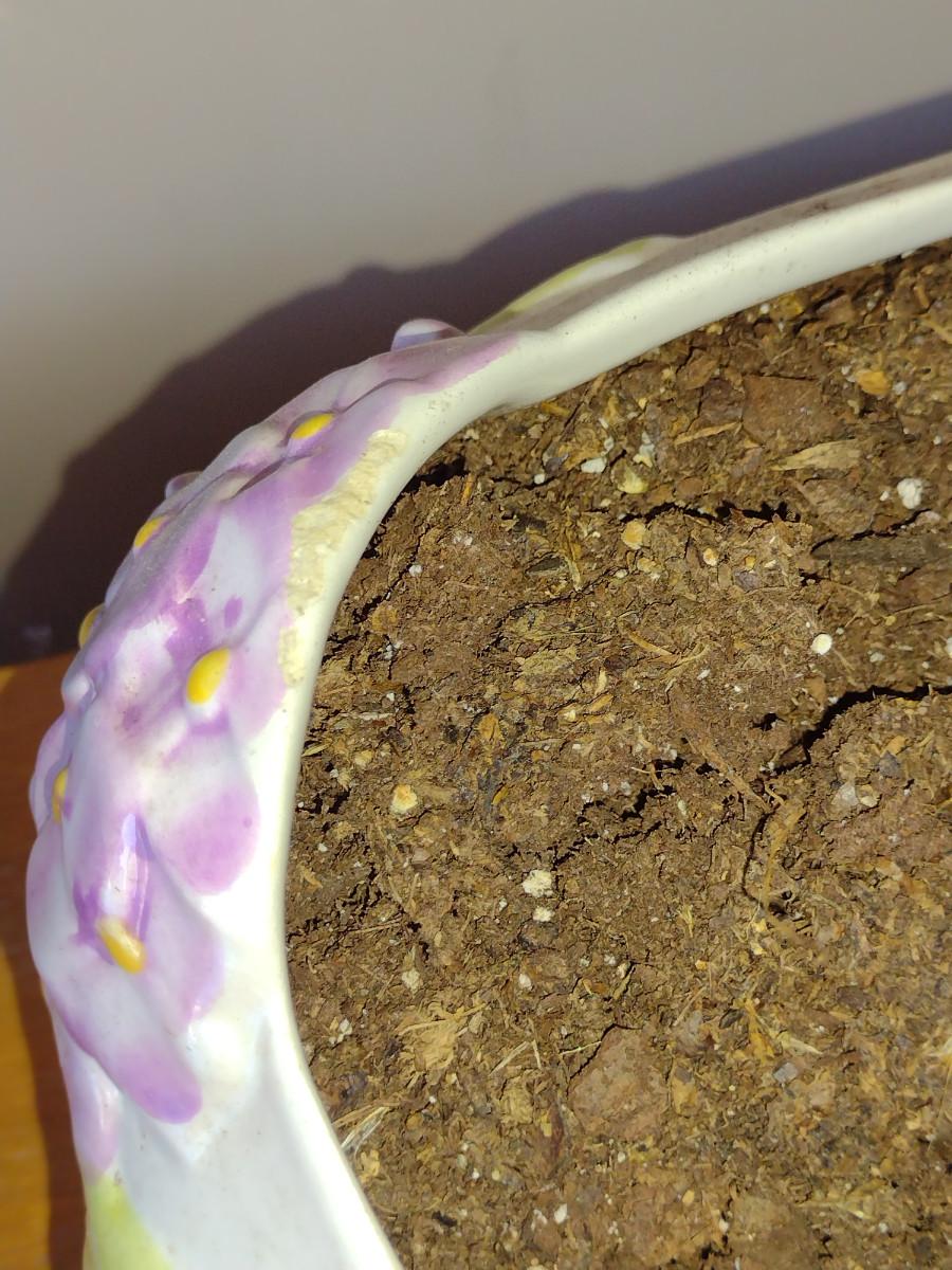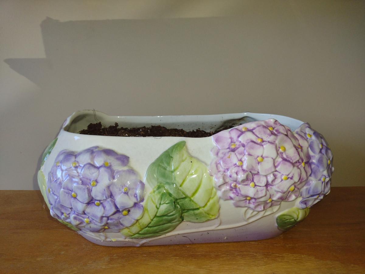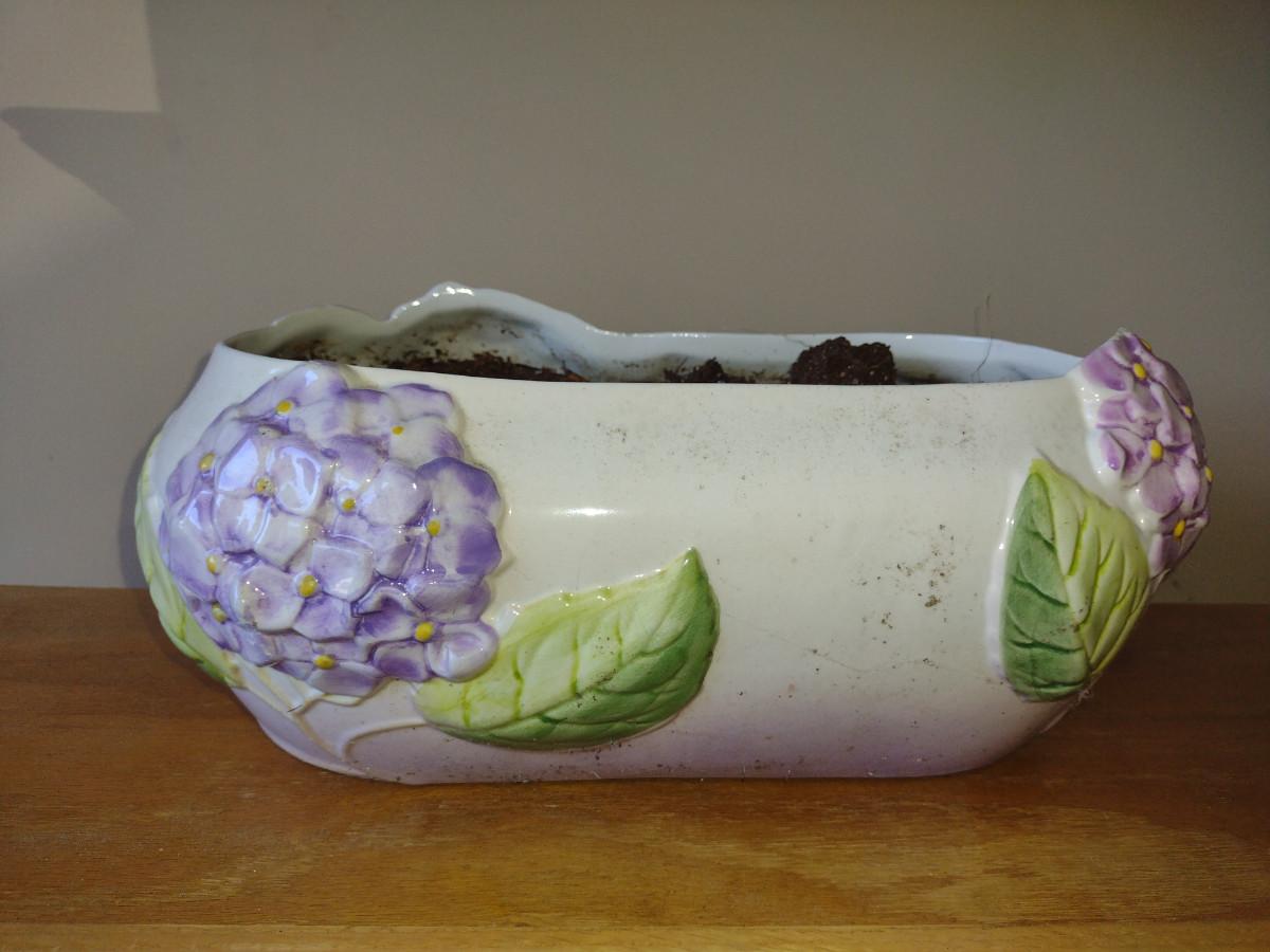 Hand Painted Ceramic Flower Planter Pot with Hydrangea Design- Approx 13 1/2" Wide