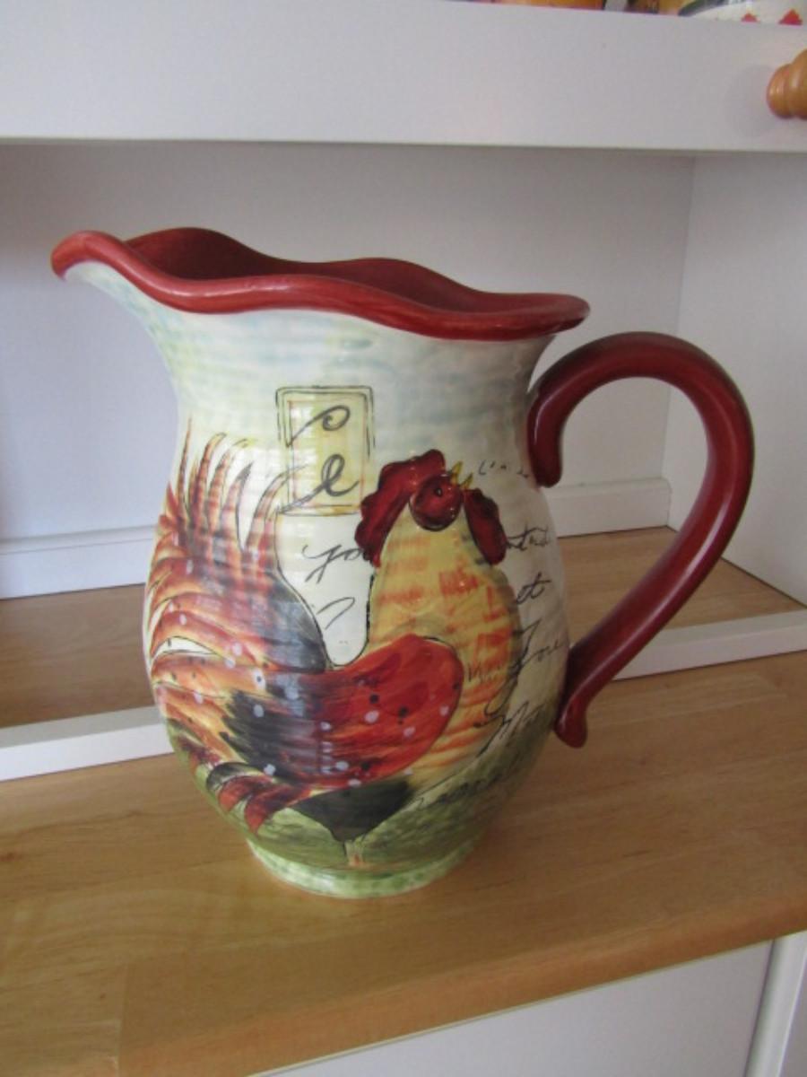 Hand Painted Ceramic Pitcher- Rooster