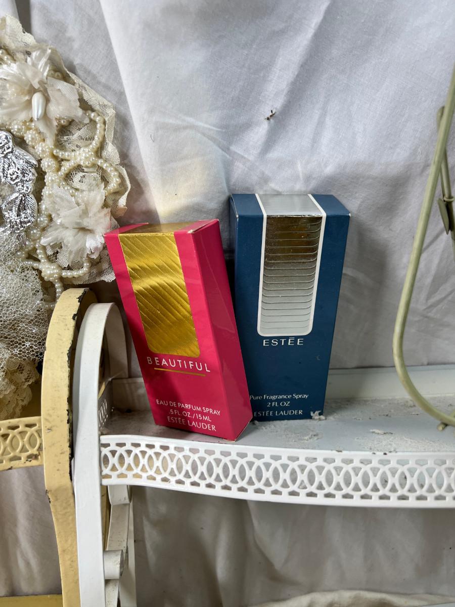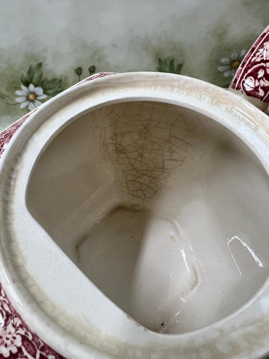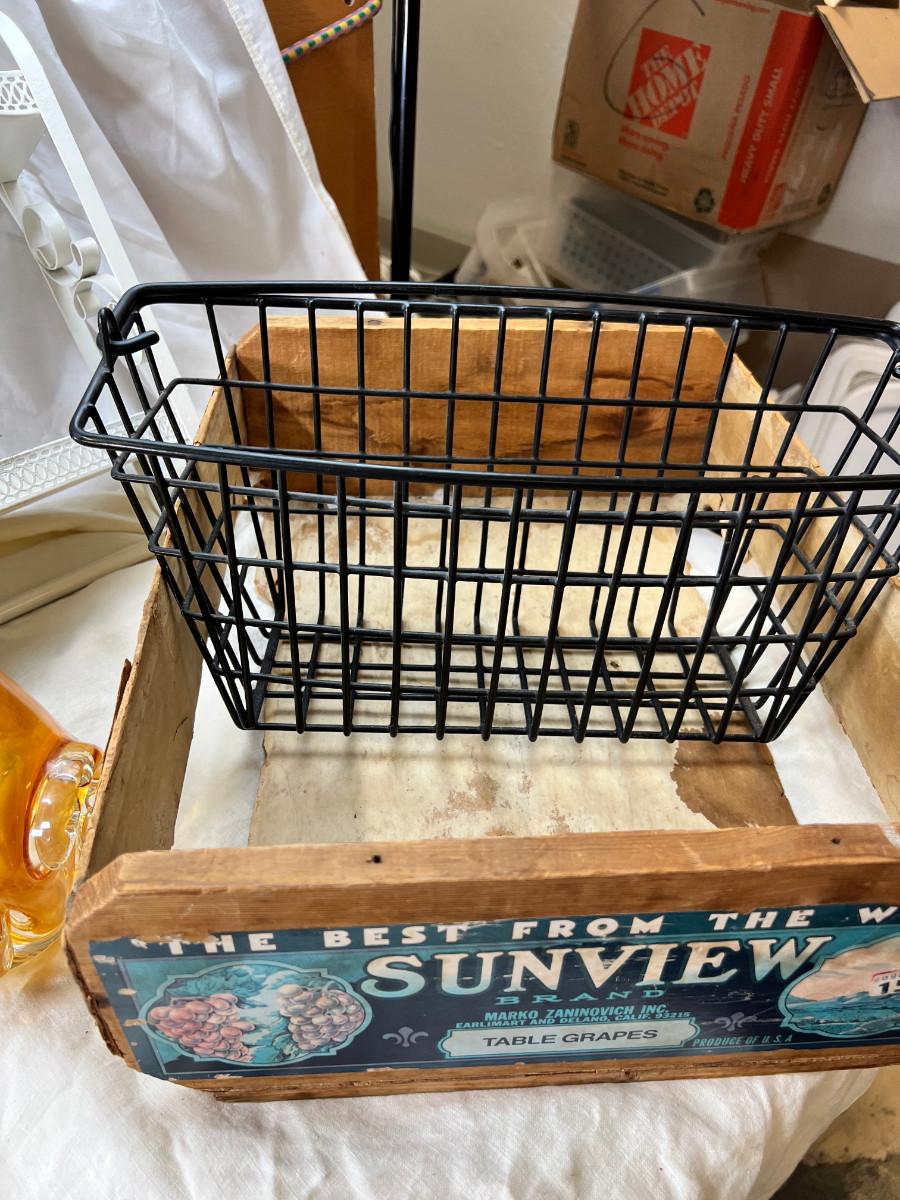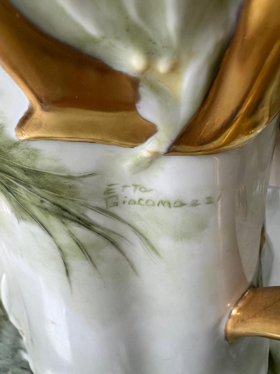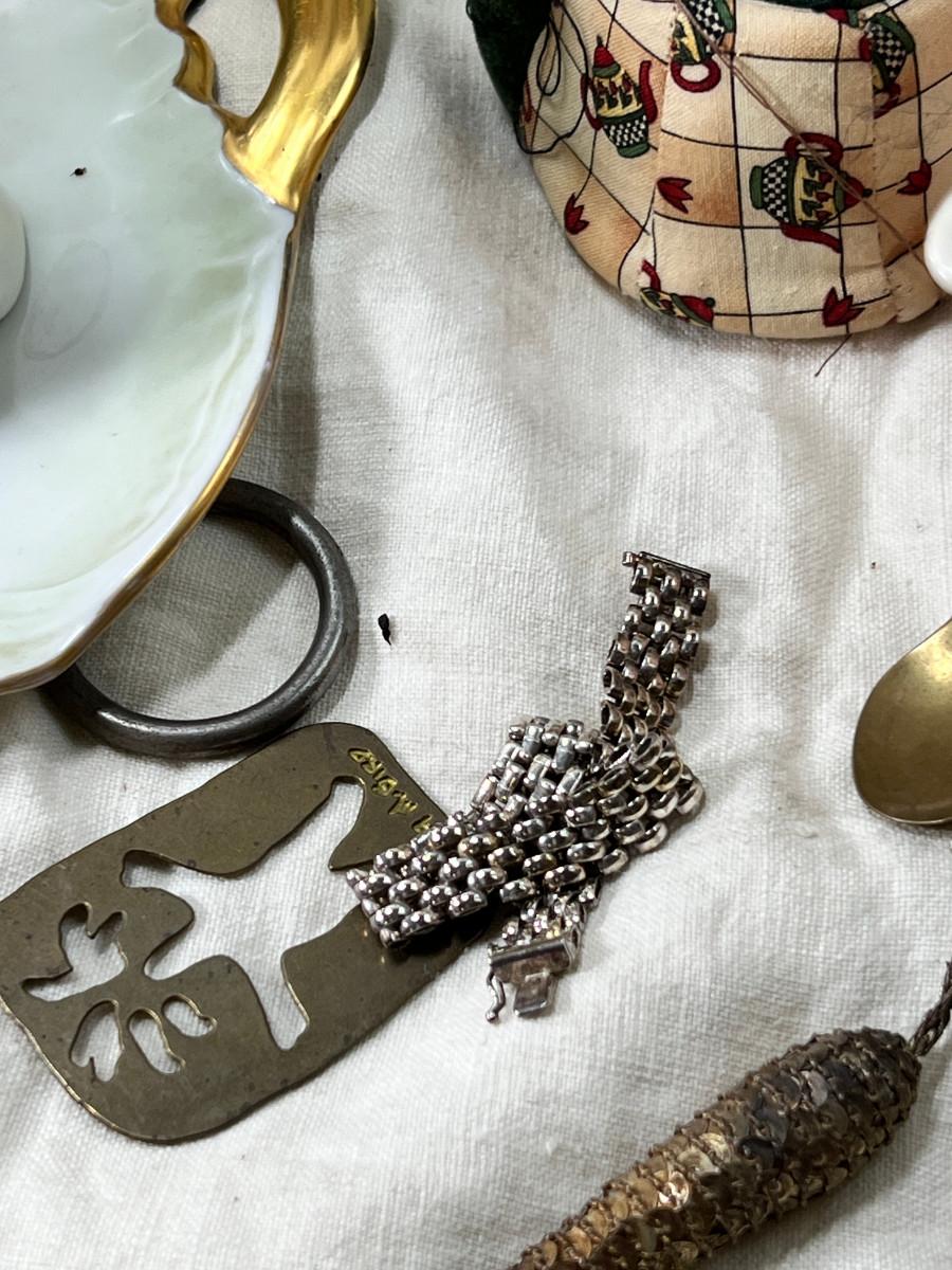 Very heavy hand blown Amber vase, Metal basket and racks, English tea pot with wear inside, Anri arch for back drop. Hand painted fine china tea and coffee pot.