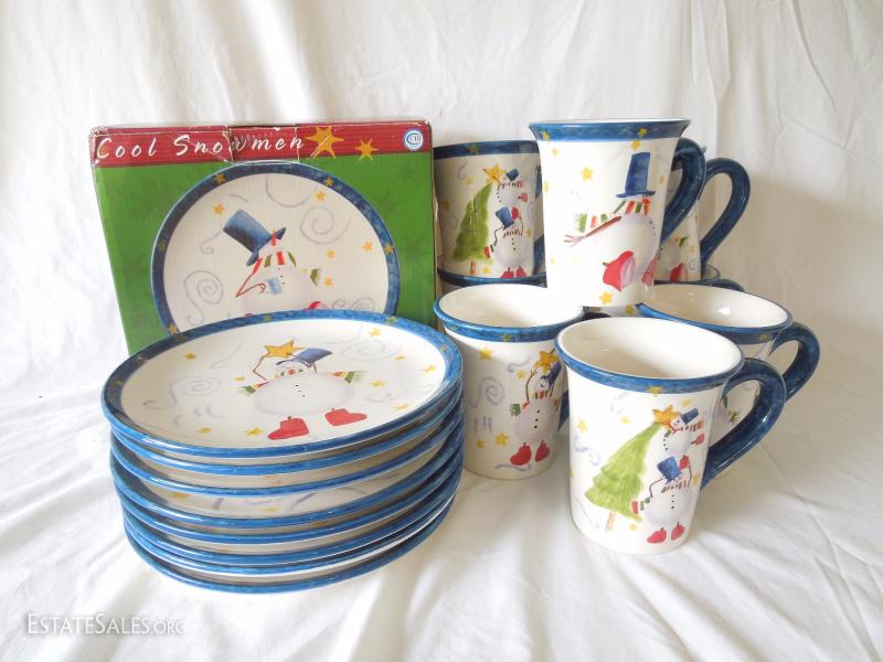 Hand Painted Christmas 8" Plates and 16 oz Mugs