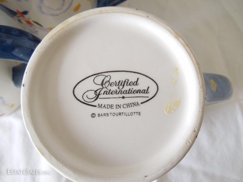 8 ceramic plates and mugs. Hand painted. One box. Includes plastic bin.
