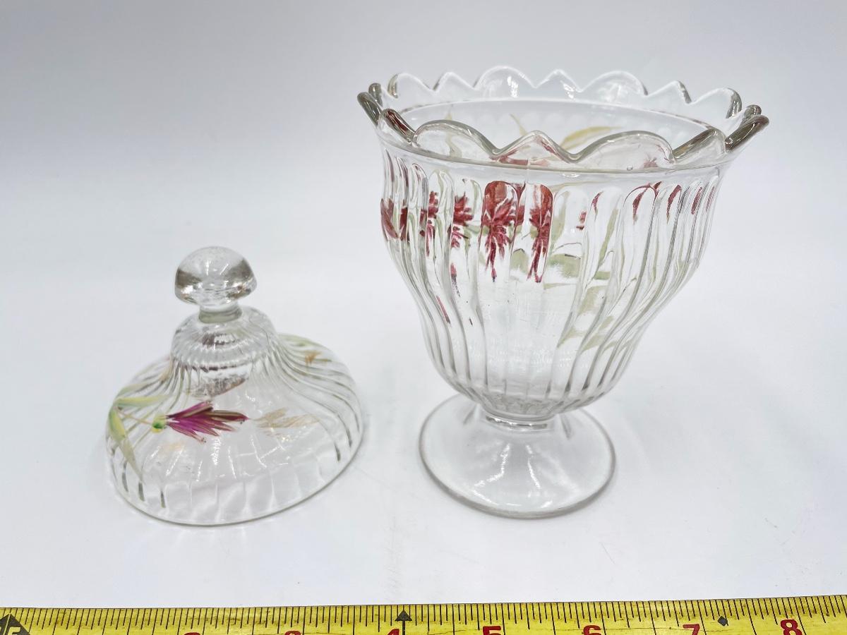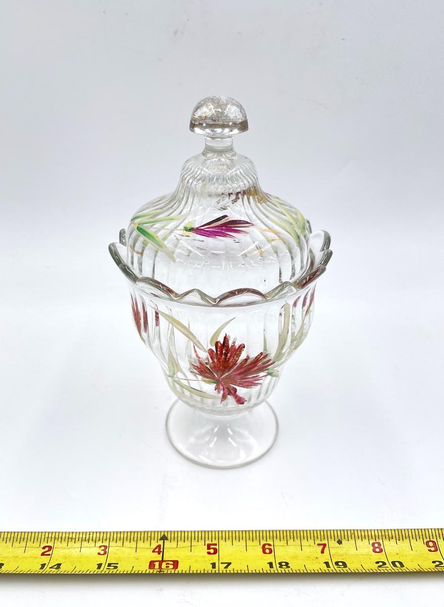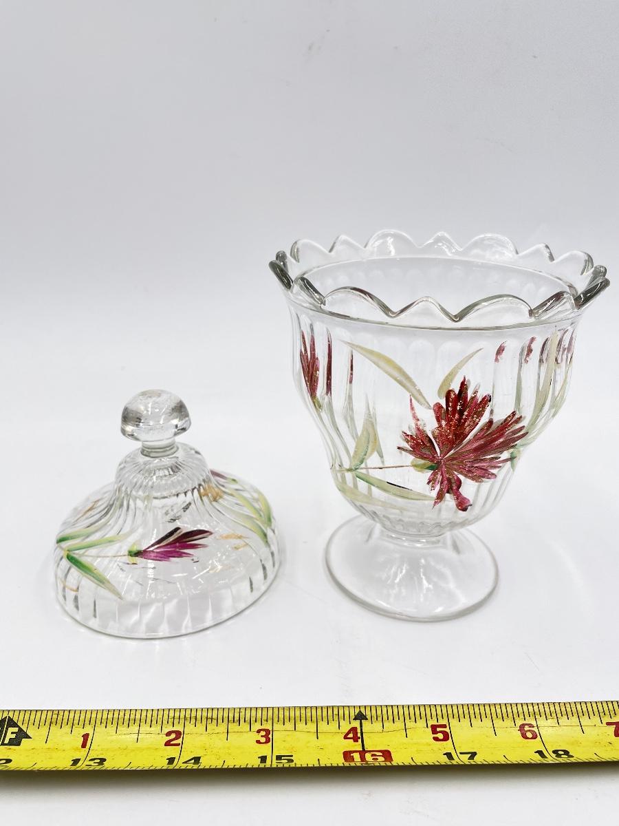HAND PAINTED CLEAR GLASS CANDY DISH