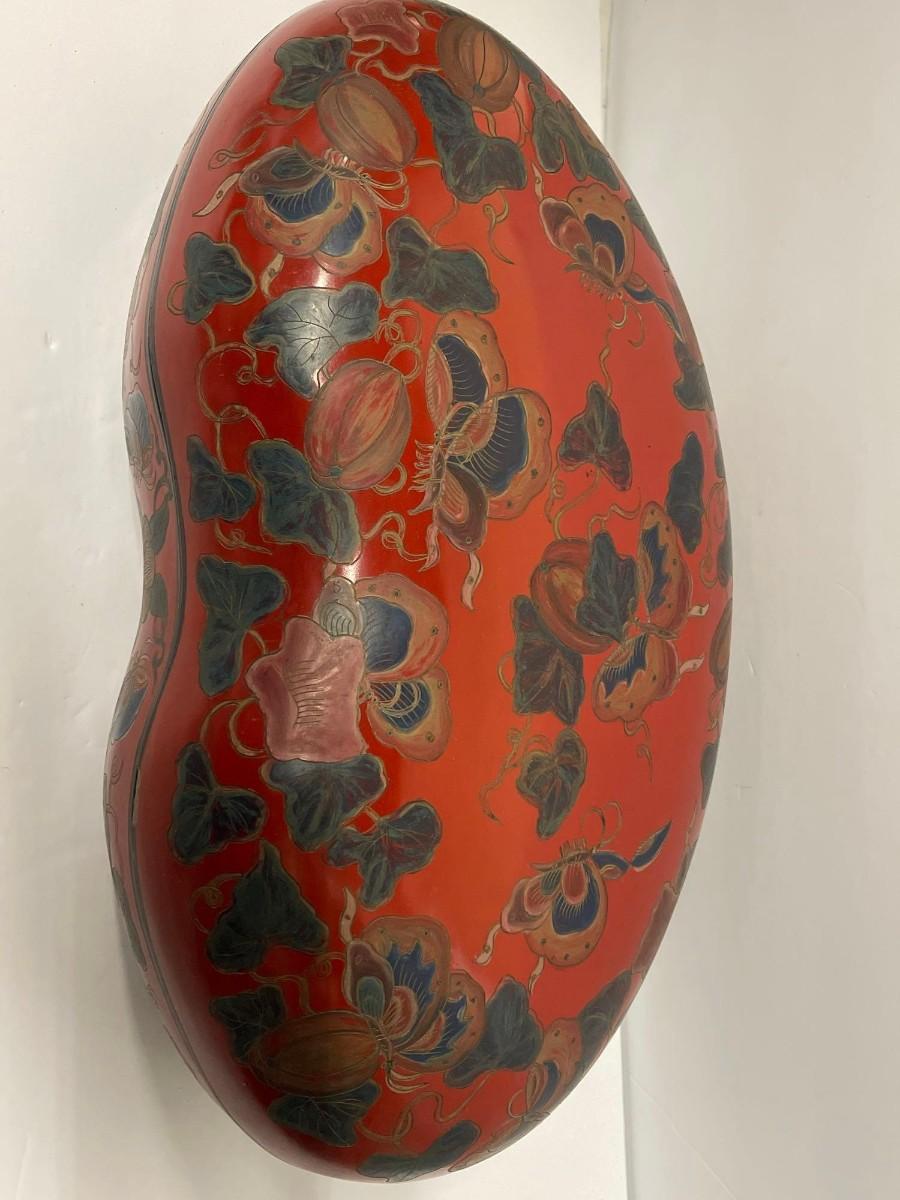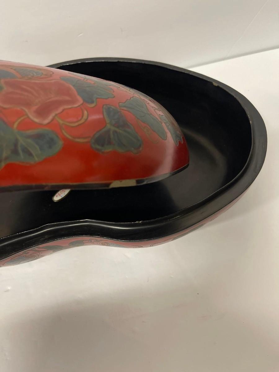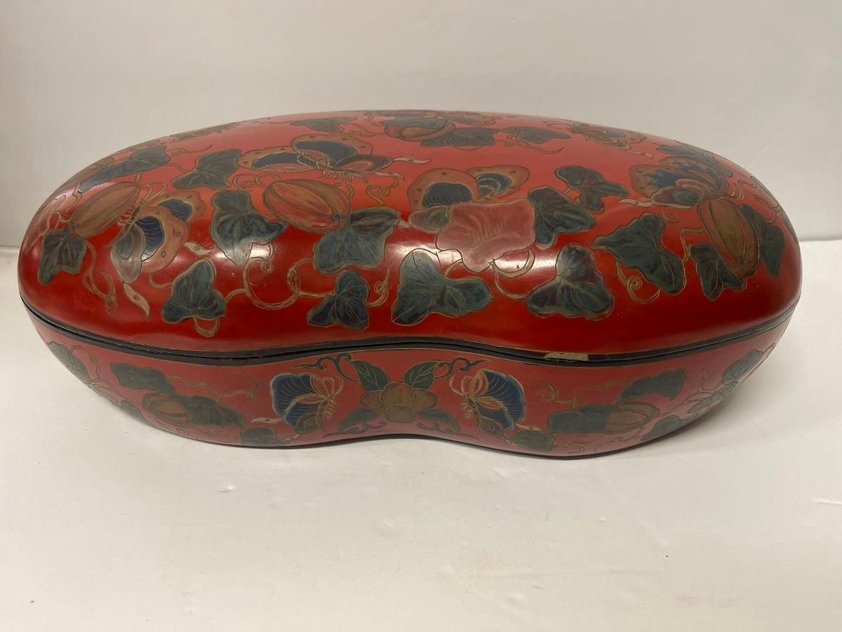 Hand Painted Decorative Kidney Shaped Box. Has a couple of chips at the rim of the lid. 16” x 9 3/4” x 5 1/2@“ high.