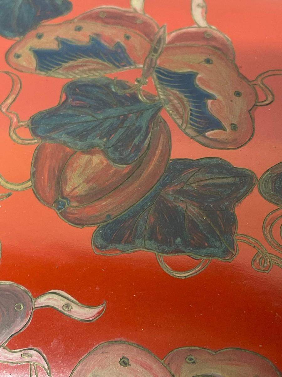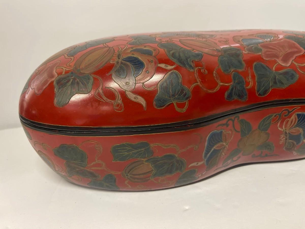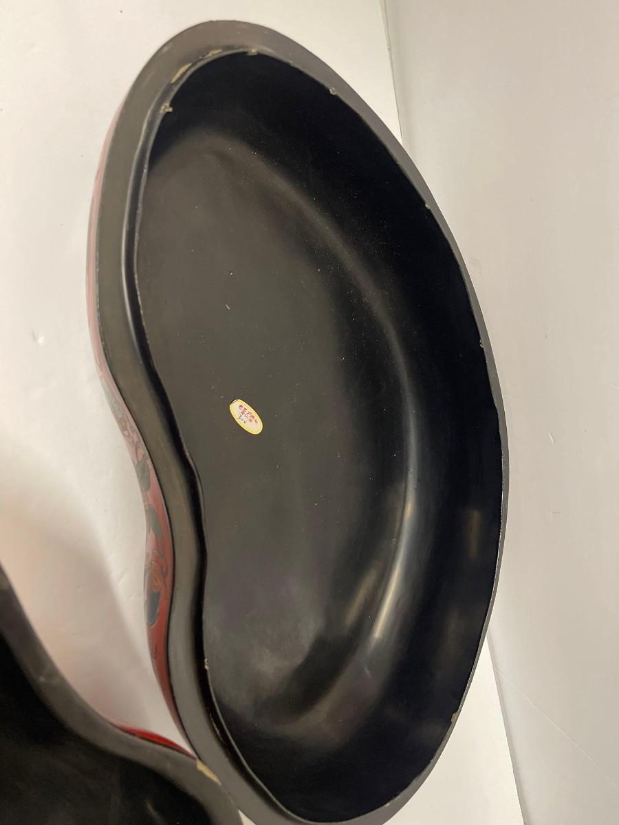 Hand Painted Decorative Kidney Shaped Box. Has a couple of chips at the rim of the lid. 16” x 9 3/4” x 5 1/2@“ high.