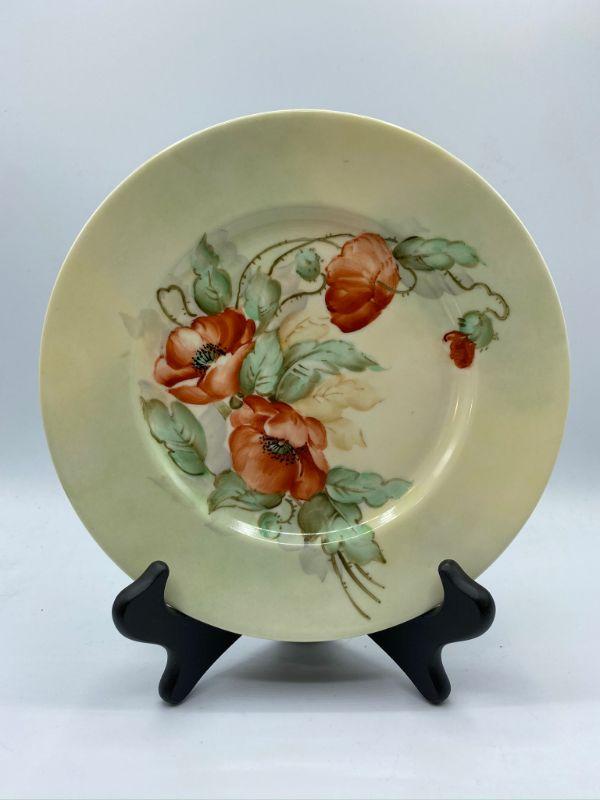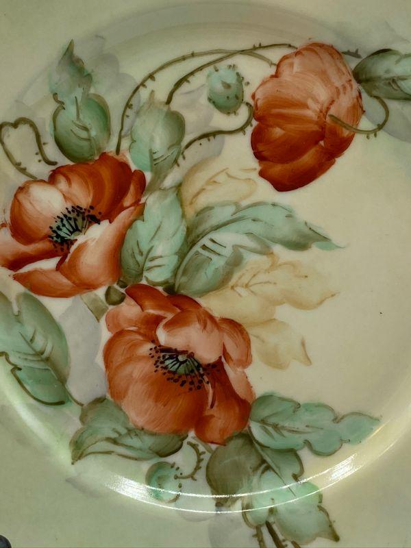 Red poppy flowers dessert plate. Hand painted. Unsure who the plate was made for but it is artist signed on the back. Good condition.