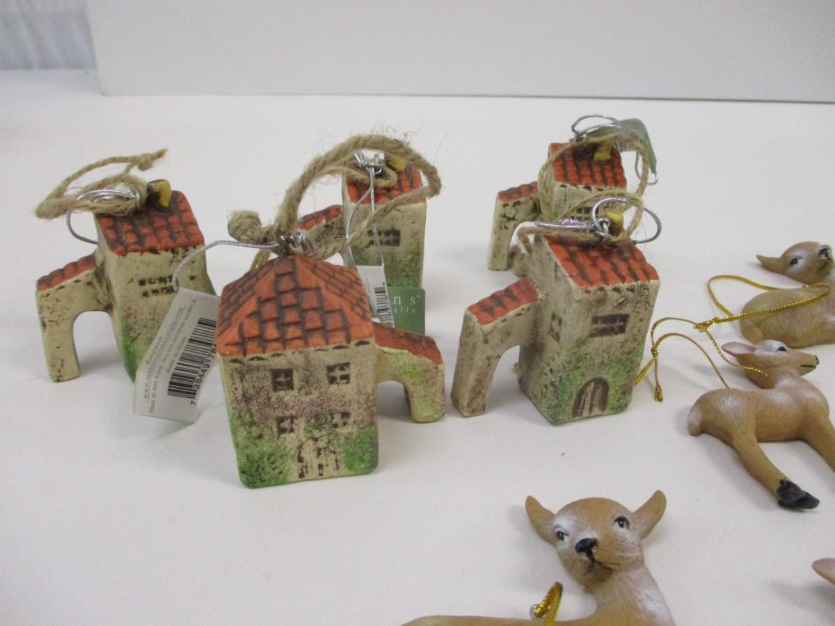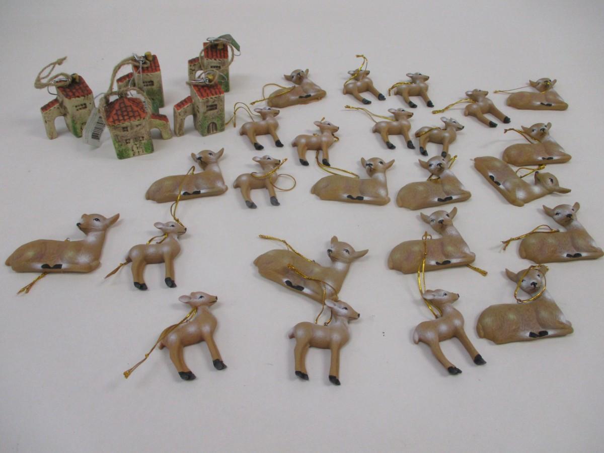 Hand Painted Doe & Fawn Deer Family Resin Ornament Miniature House Ornament