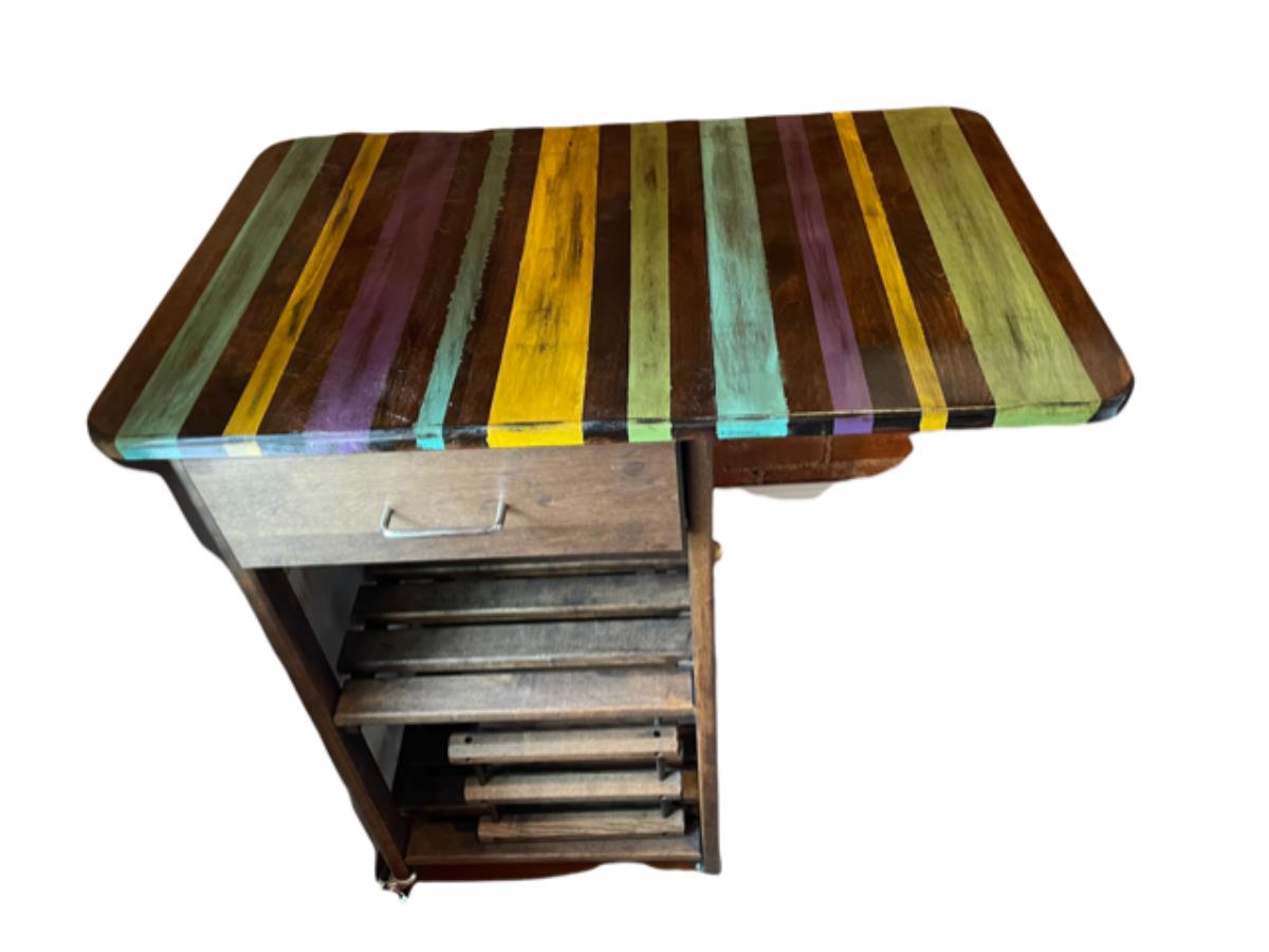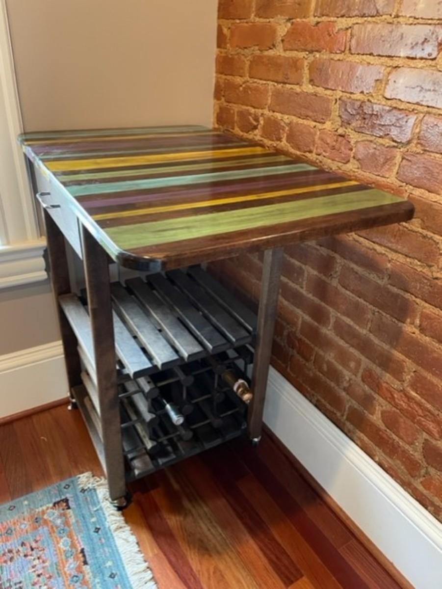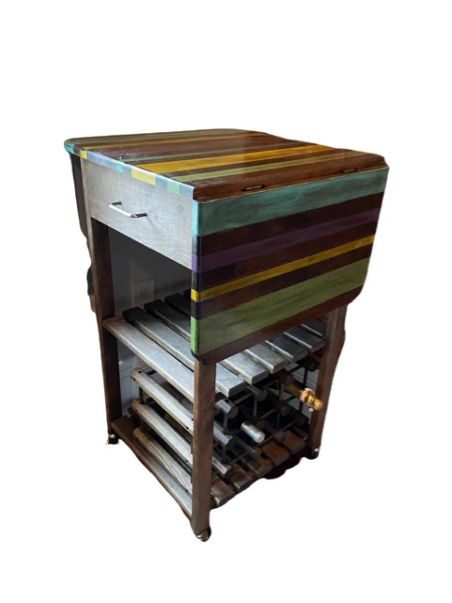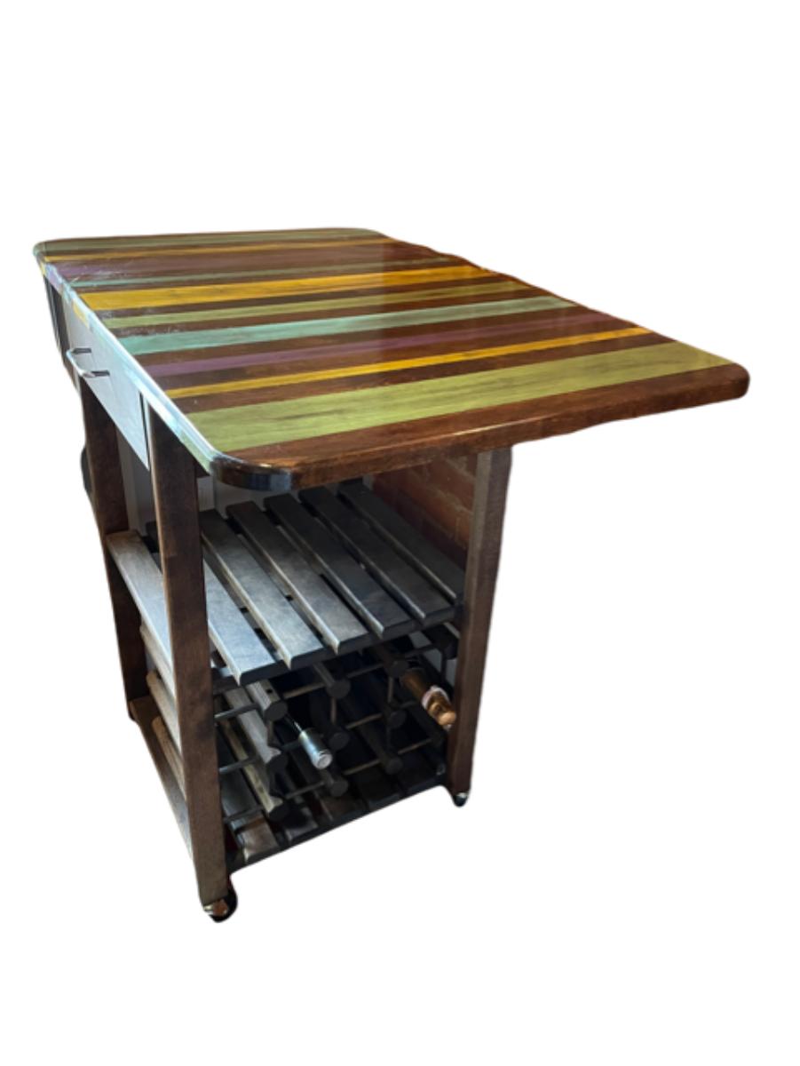 Hand Painted Drop Leaf Table With Wine Rack And Storage Drawer - PY11655