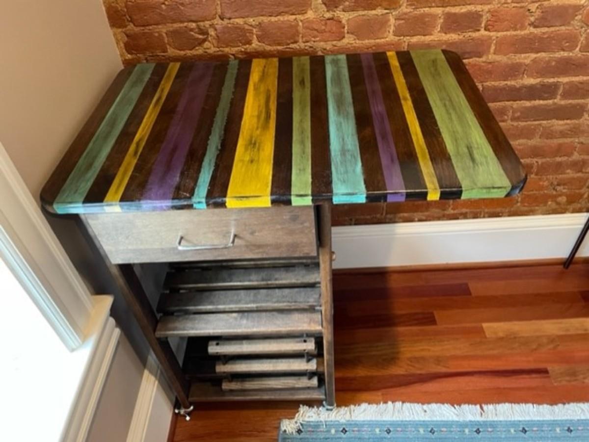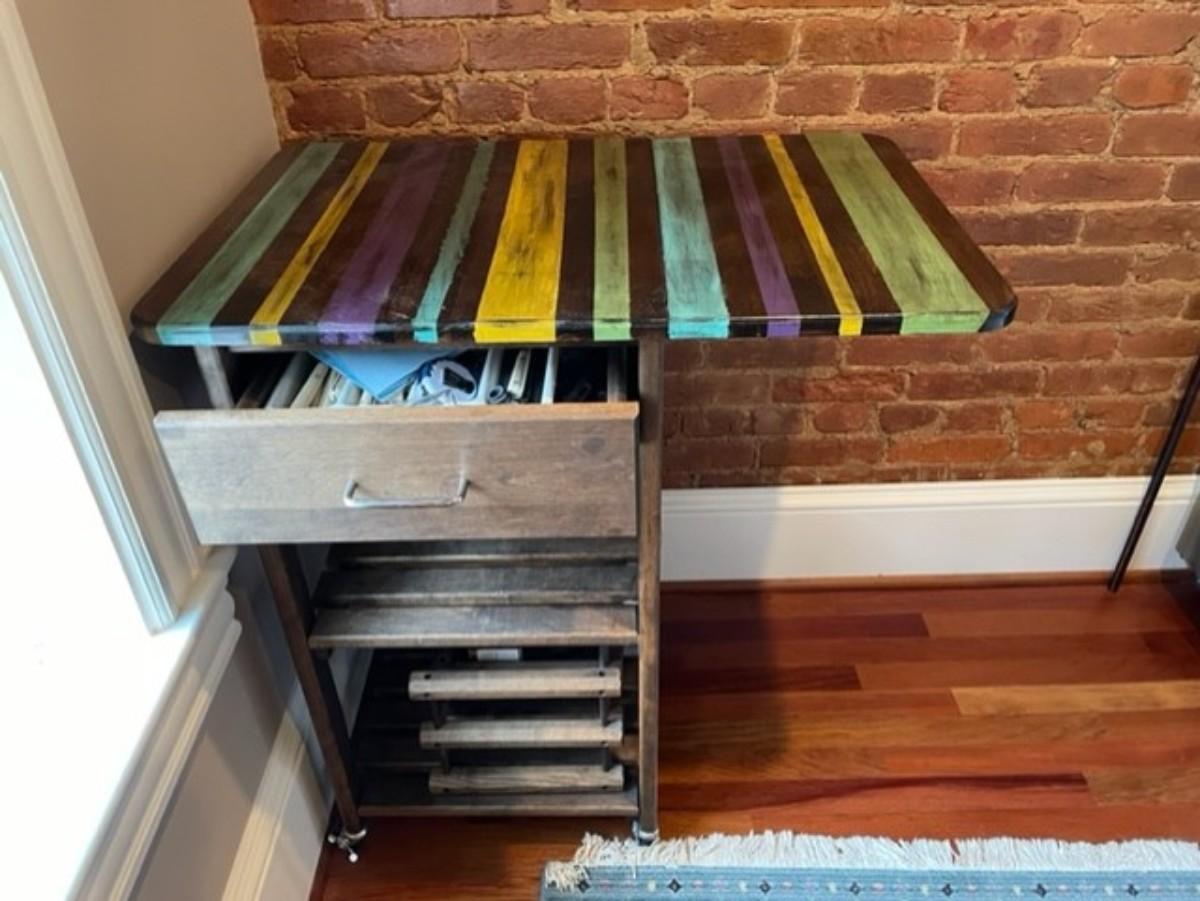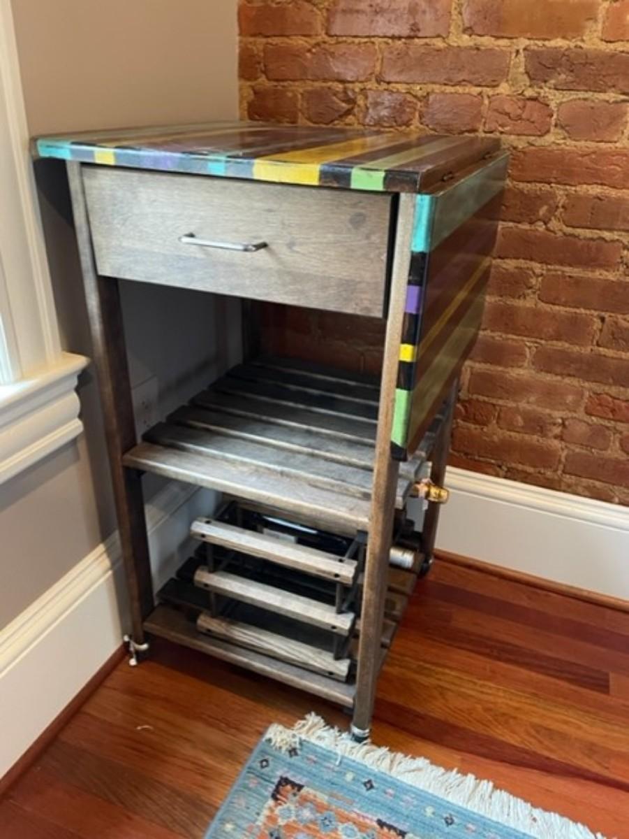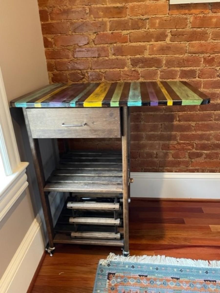 Hand Painted Drop Leaf Table With Wine Rack And Storage Drawer - PY11655