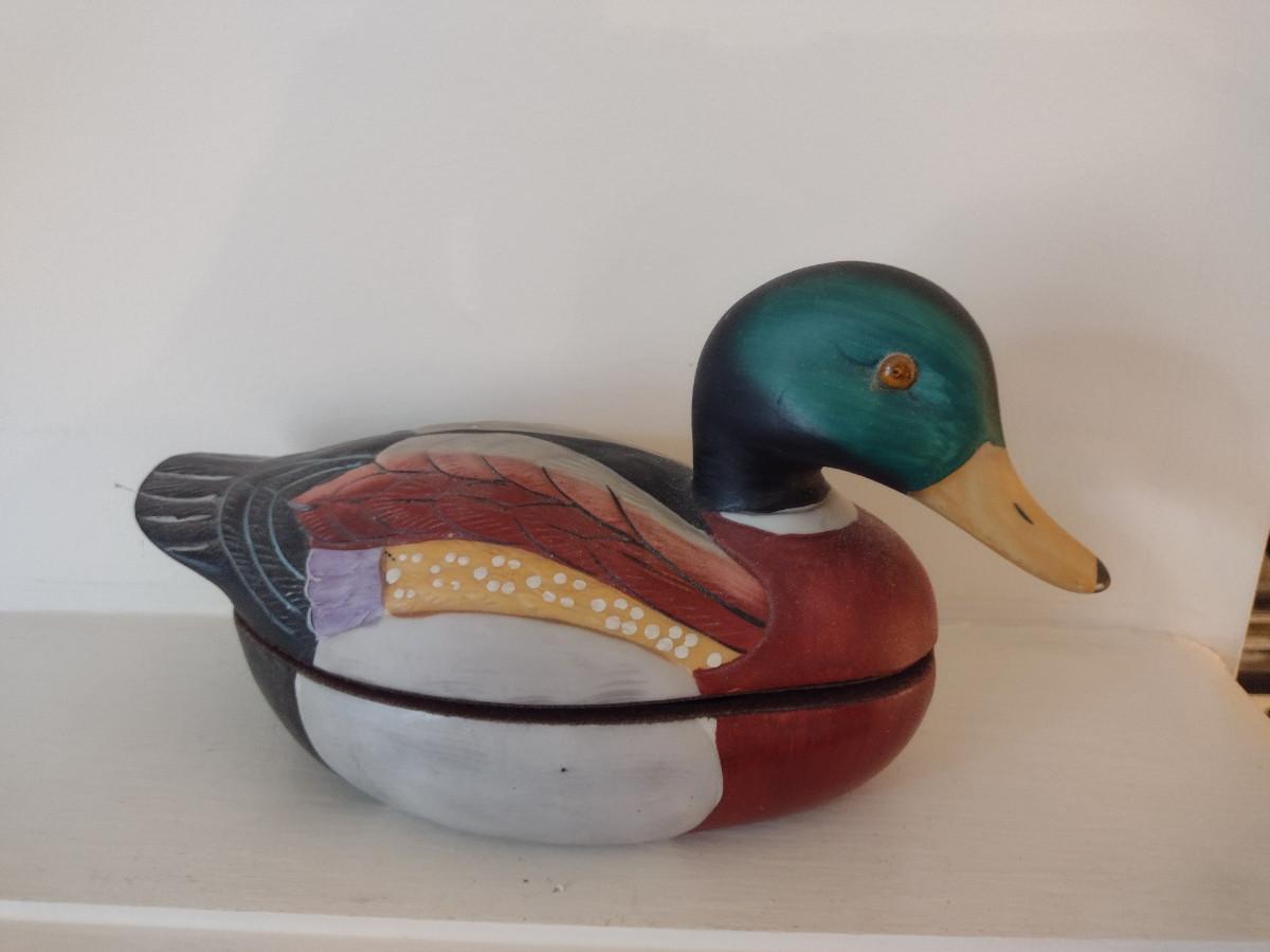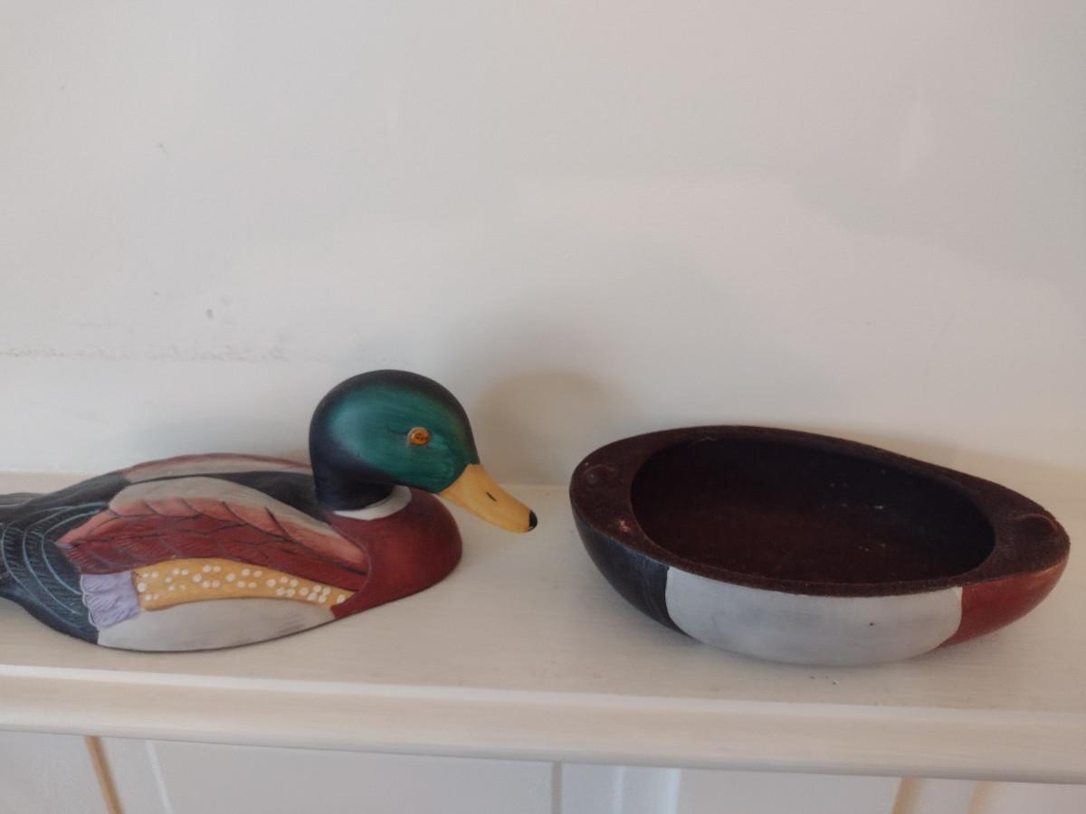 Hand Painted Duck Design Trinket Dish- Approx 8 1/2" Long, 4 1/2" Tall