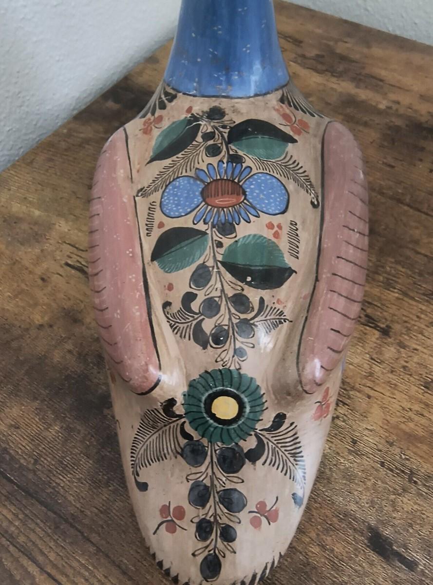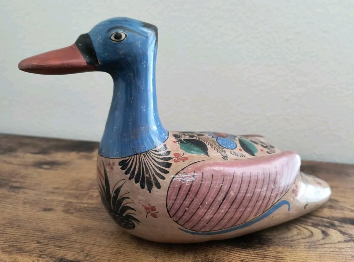 Large tonala Duck Figurine Mexican pottery hand painted home décor 11in