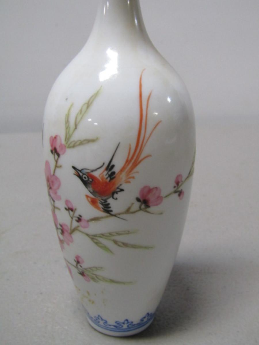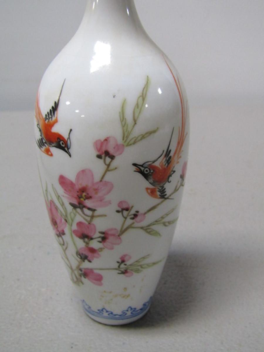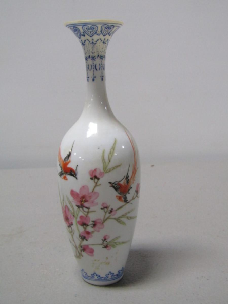Hand Painted Eggshell Porcelain Vase- Bird Theme- Approx 6 1/2" Tall