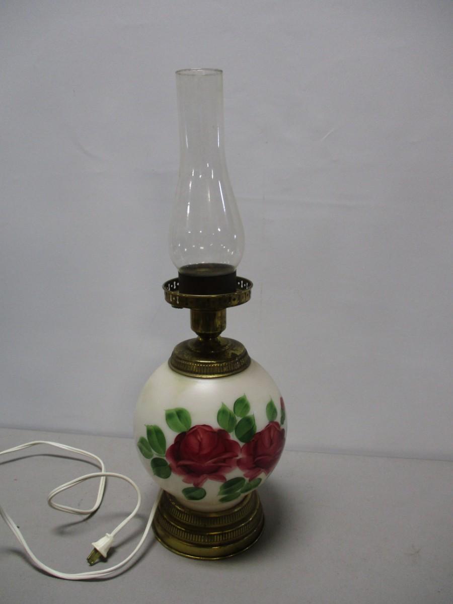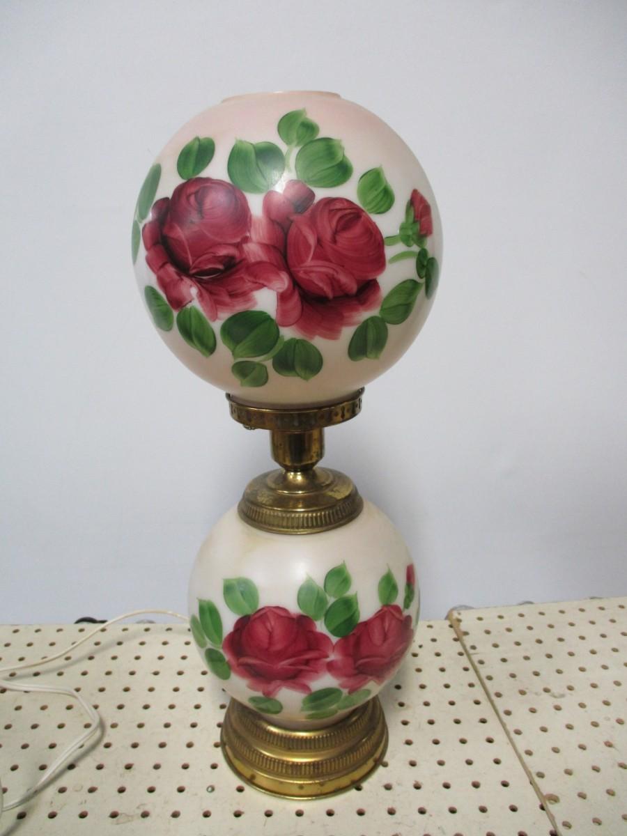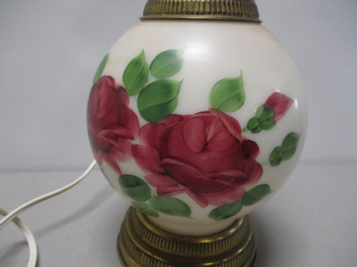 Hand Painted  Electric Lamp With Roses And 2 Shades (see all pictures)