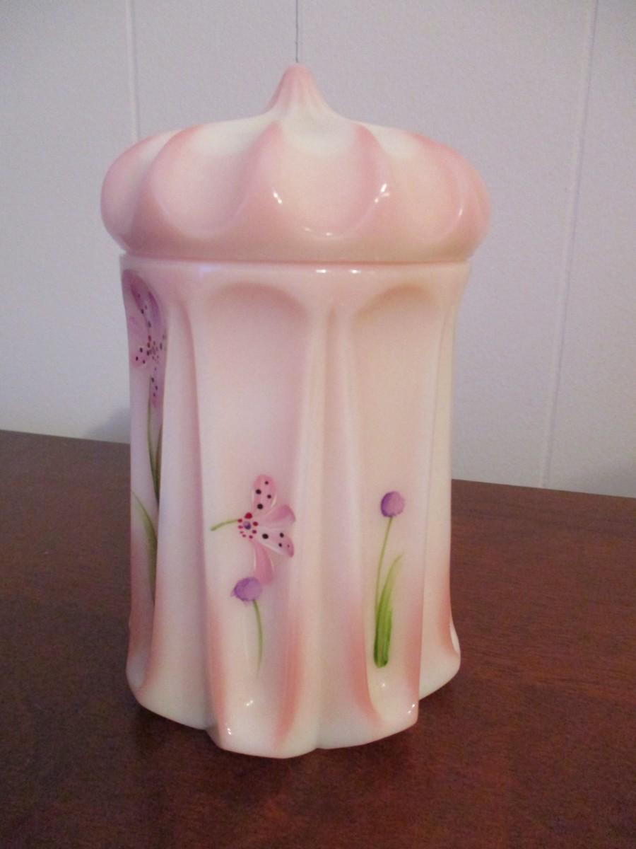 Hand Painted Fenton Art Glass Rosalene Persian Tent Box