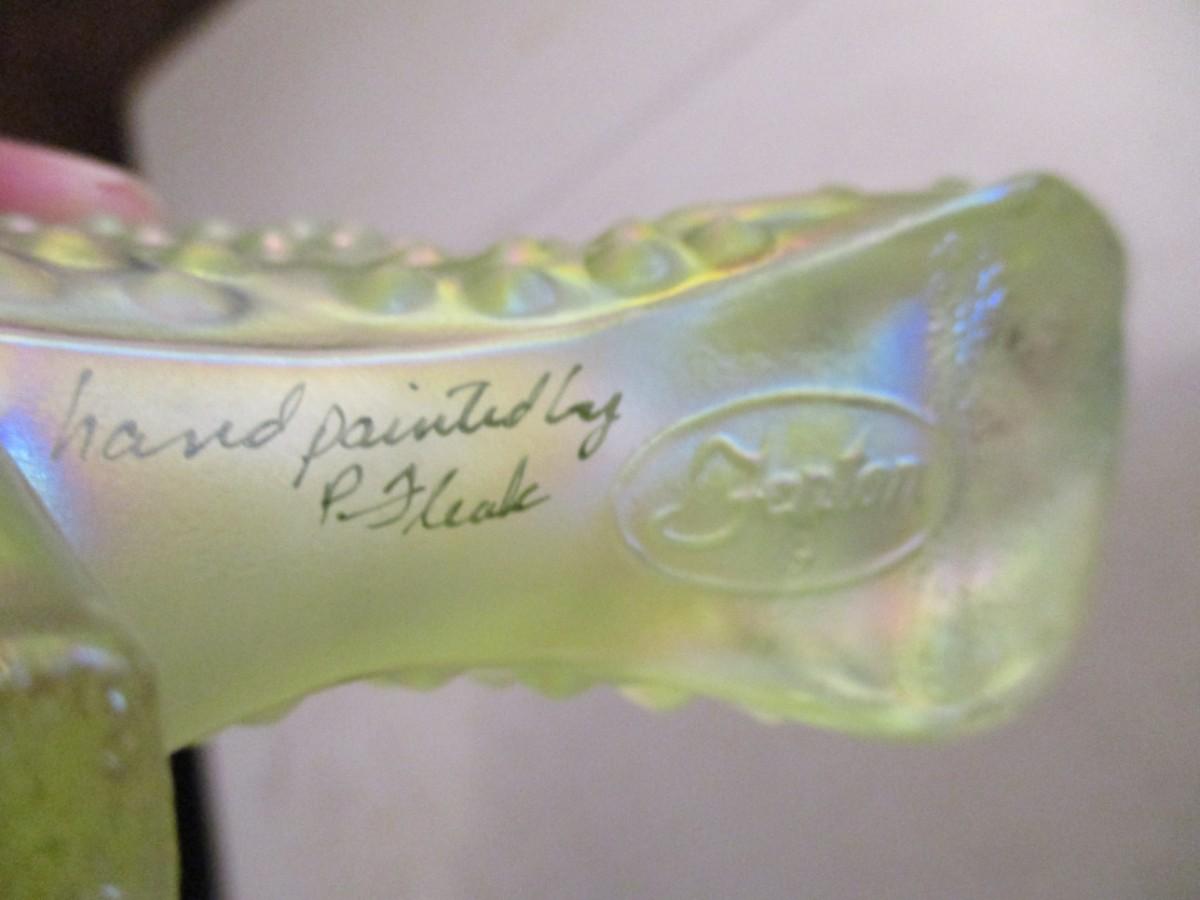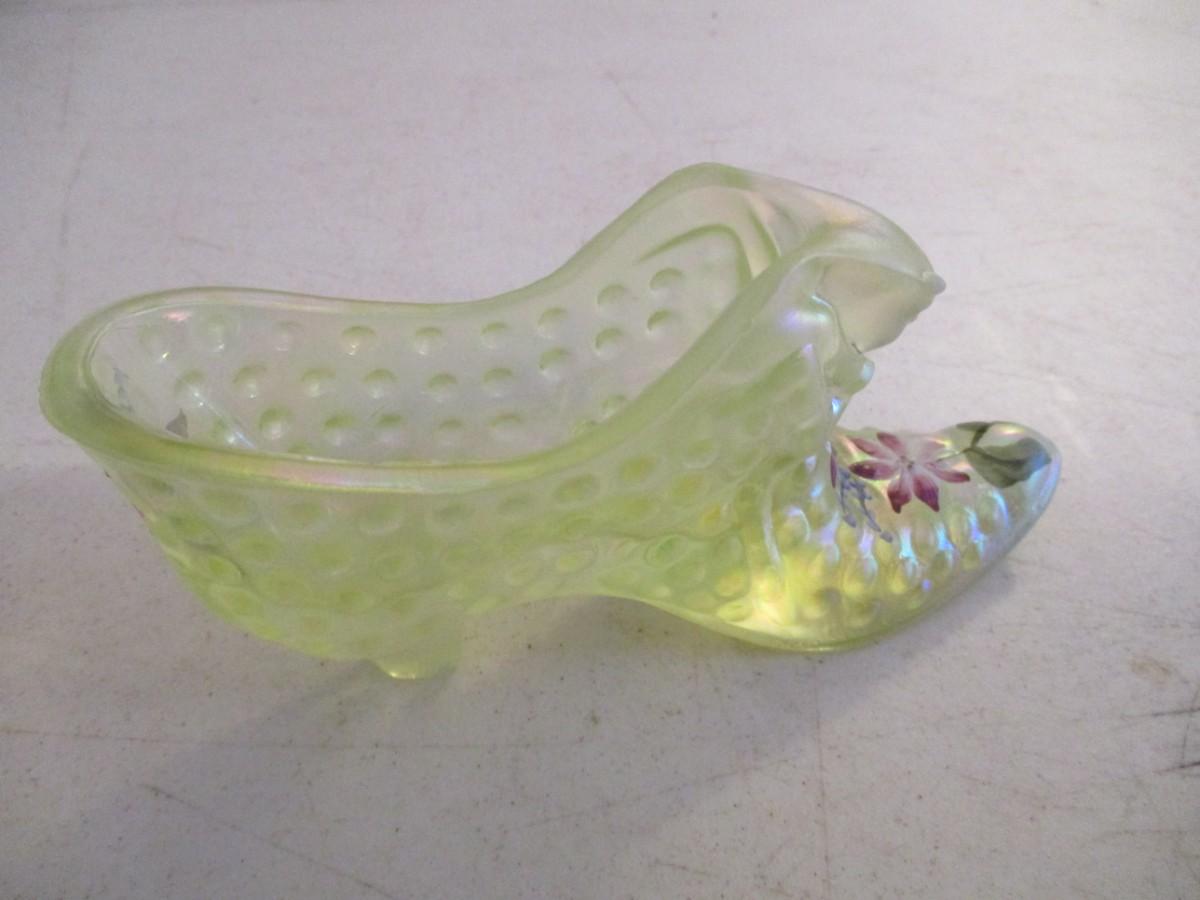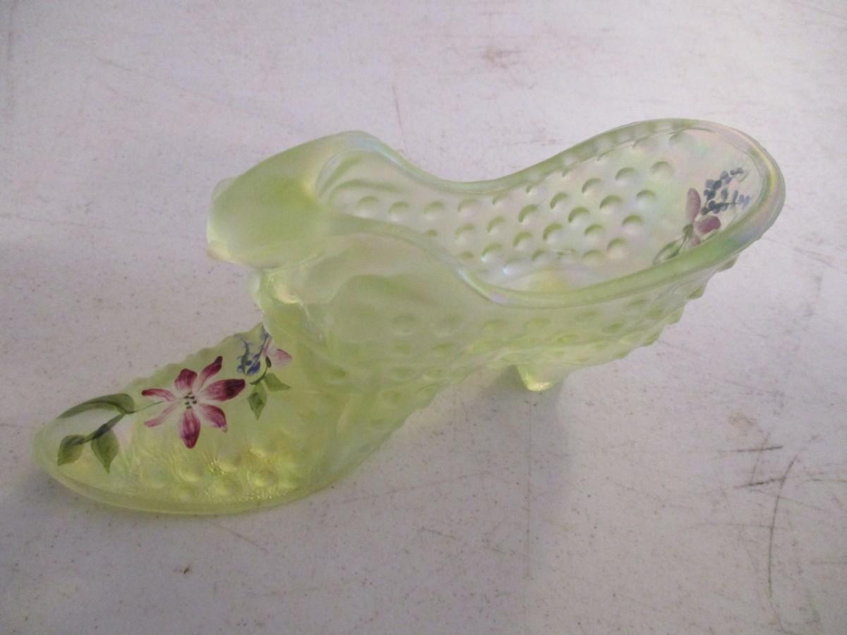 Hand Painted Fenton Glass Shoe