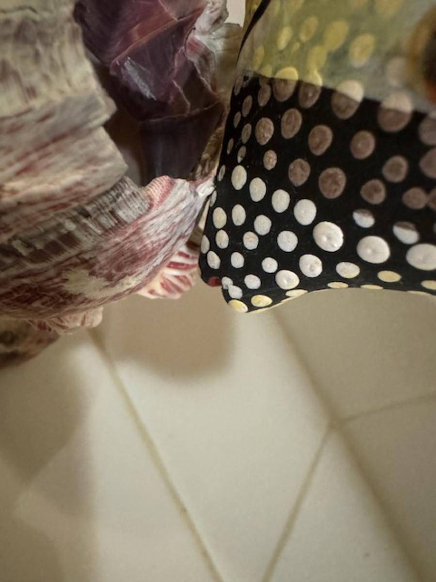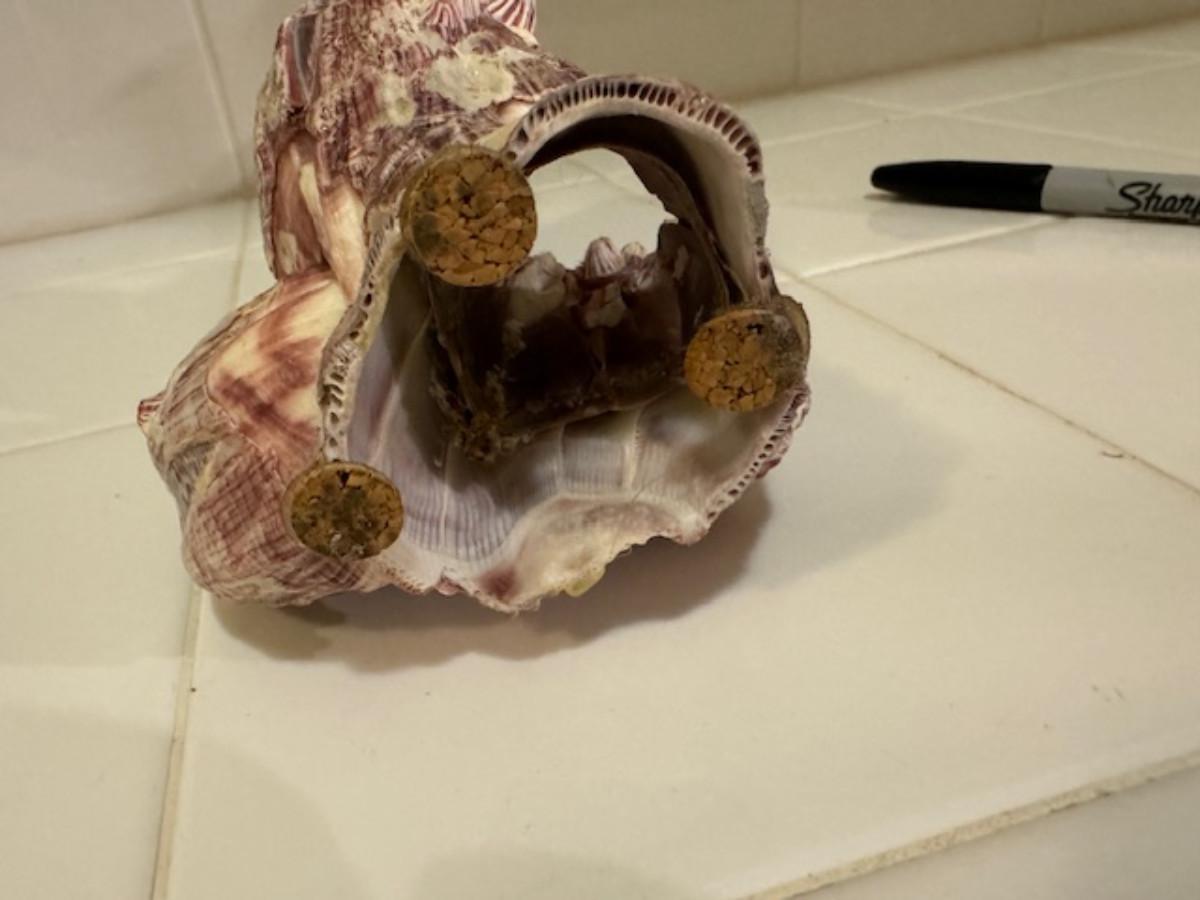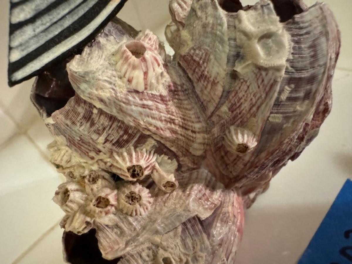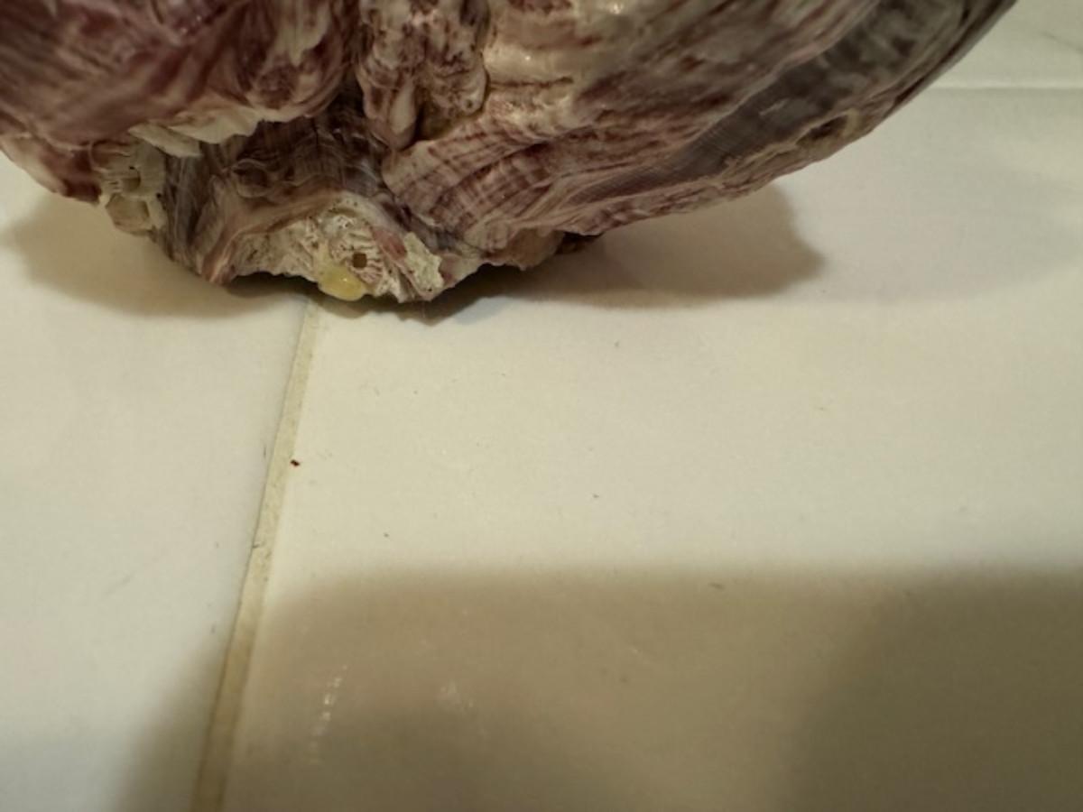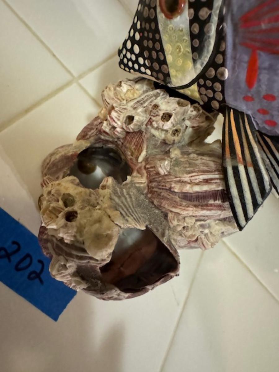 on real sea shell decor. 1 piece in part of shell not sure where it connects to the shell. 1 small chip at bottom of sea shell.
